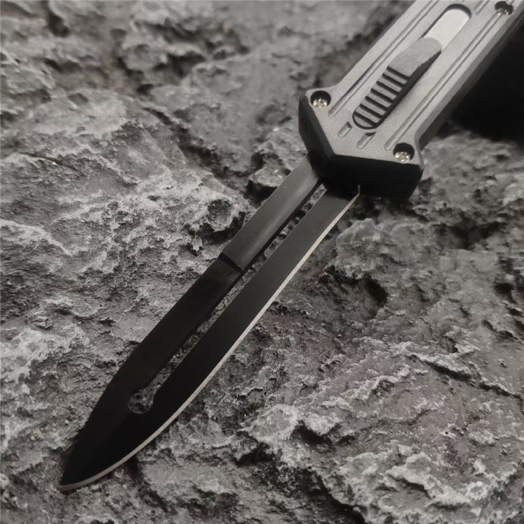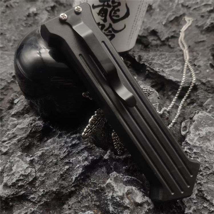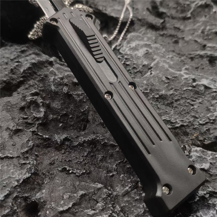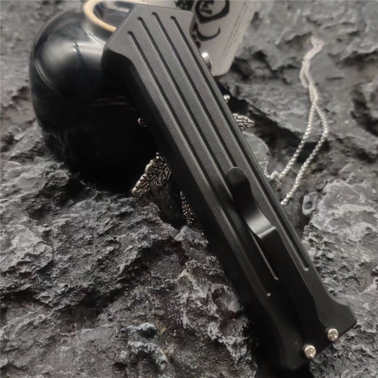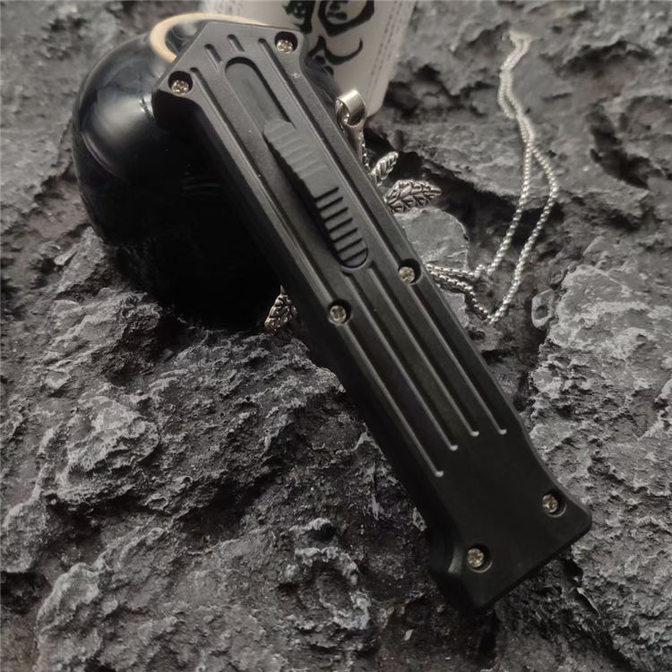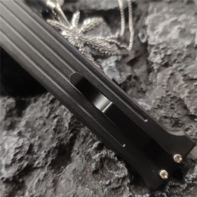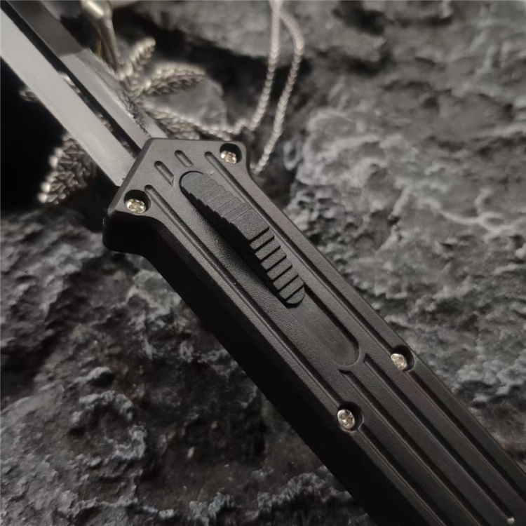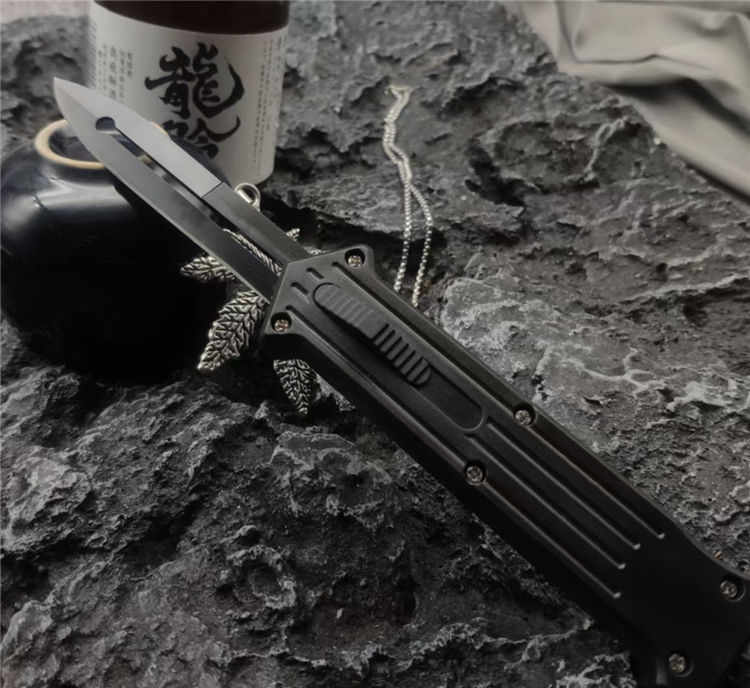 小丑同款跳刀 全长:19CM 刃长:8.2CM 柄长:10CM 刃厚:0.3CM 刃材:440C 柄材:铝合金 重量:68克 直跳独特的防滑手柄,柔性弹收刀刃带来顺滑感觉,单面平磨的刀刃穿刺威力更强。附送的双刀鞘和口袋夹非常便携