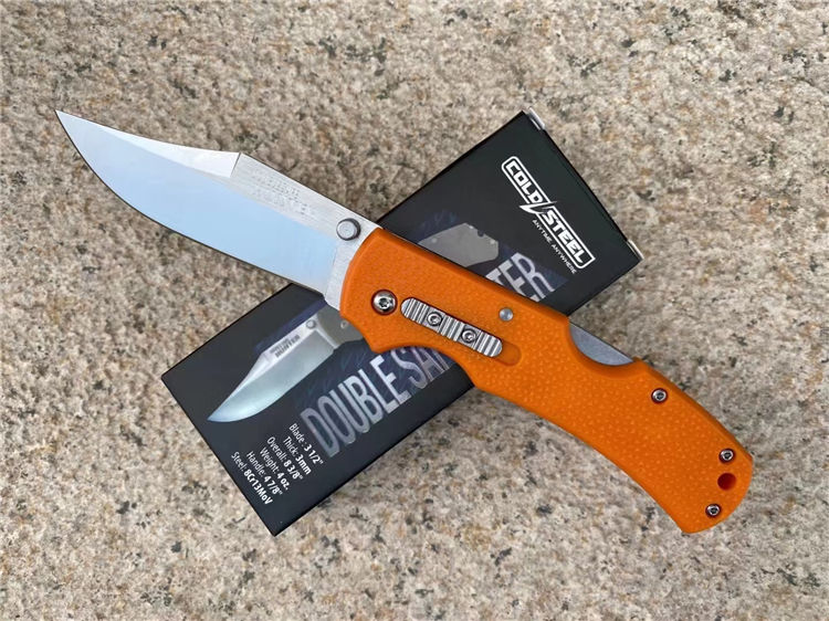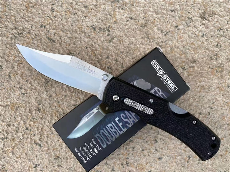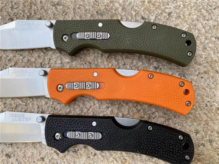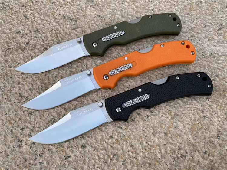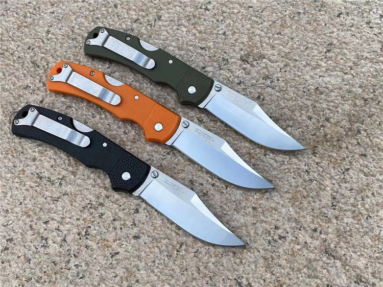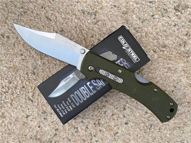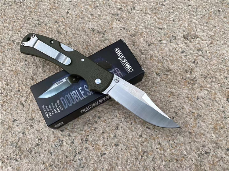 冷钢侦察兵70031折刀 全长:21.3Cm 刃材:8CR18MOV 硬度:58-59HRC 刃厚:3.7mm 刃长:9.0Cm 柄长:121Cm 柄材及处理:三维加工黑色和绿色G10皮带夹 重量:156g 彩盒包装 注:手柄侧面带安全锁