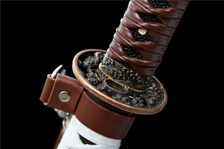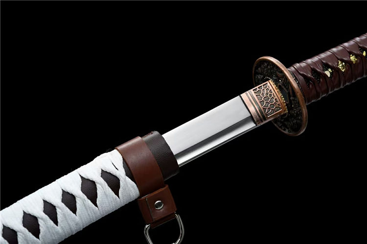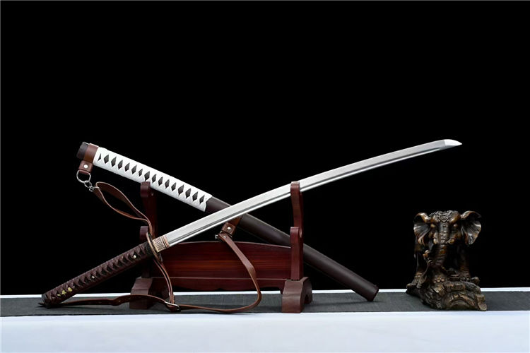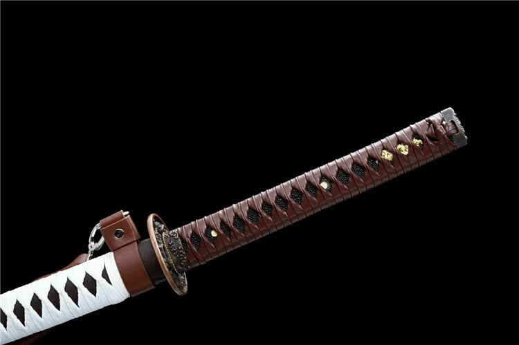 行尸走肉幻夜武士刀 全长:103cm 刃长:71cm 柄长:26.5cm,缠绕防滑皮绳,刀鞘绕高档棉绳 刃宽:3.2cm 硬度:60° 刃材:高碳钢手工锻造、手工研磨工艺,血槽设计 刀身手工锻打镜面抛光,配高端锦盒实木皮套刀鞘【可背式】