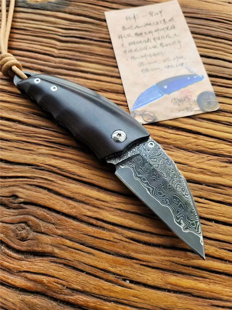 简师傅作,此款折刀两头尖尖,萌萌的形态酷似一只可爱的穿山甲,简师傅原创设计制作,外观与众不同的形状和内部非常规的结构,给刀友眼前一亮的不同感受与操作手感。刀柄精选非洲老料黑檀木精工雕刻并精细打磨抛光,内嵌式刀架设计让整把刀更加紧凑轻薄,不锈钢底骨3D雕刻更显立体效果,主轴镶嵌2片高精度滚珠轴承开合更加顺滑,隐藏式尾巴开关更具神秘特色。【穿山甲】别具一格的设计风格与精细的做工,更加适合刀友收藏把玩,实用性又非常高