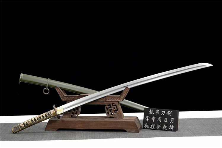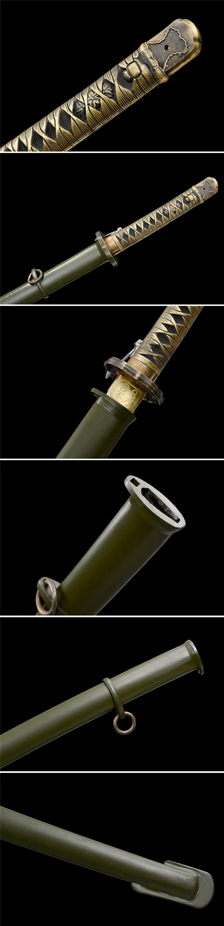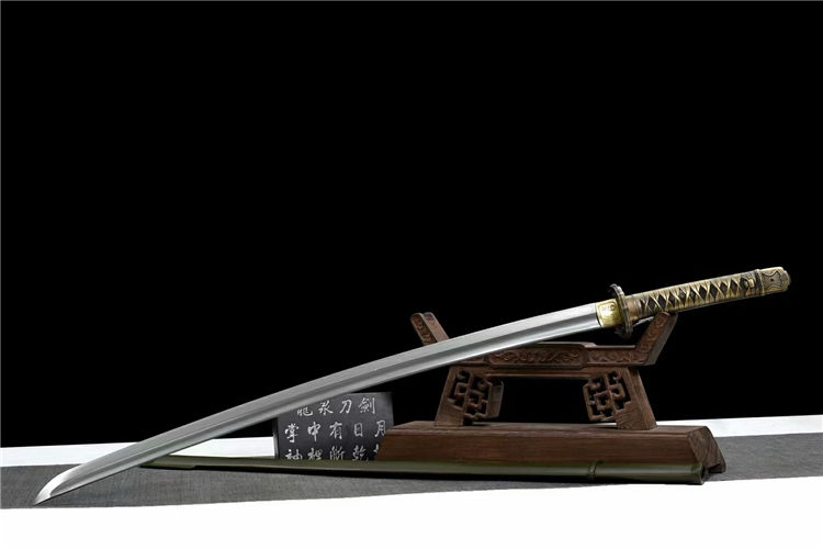 98武士军刀 全长:95cm 刃长:71cm 柄长:20.5cm 刃宽:3.2cm 刃厚:0.7cm 重约:1.45kg 刀鞘:铁制 配件:纯铜 刃材:弹簧钢