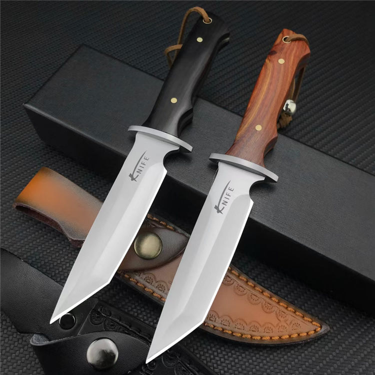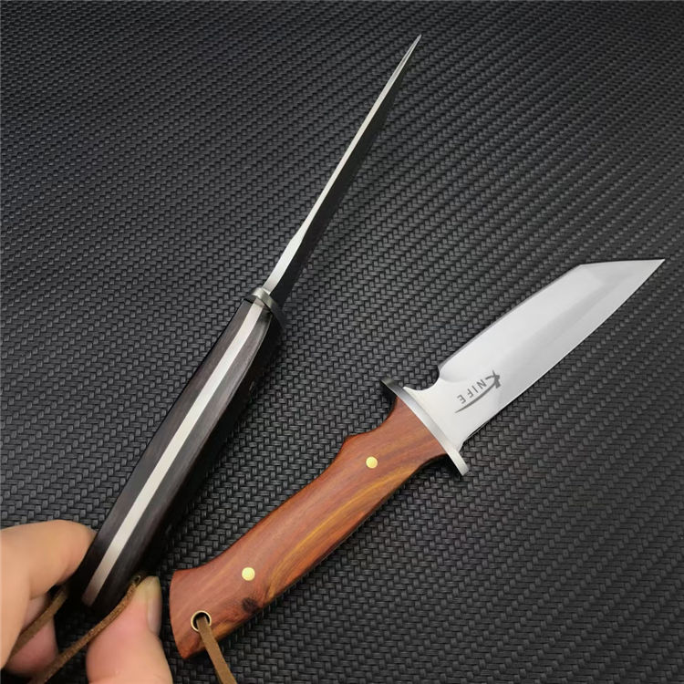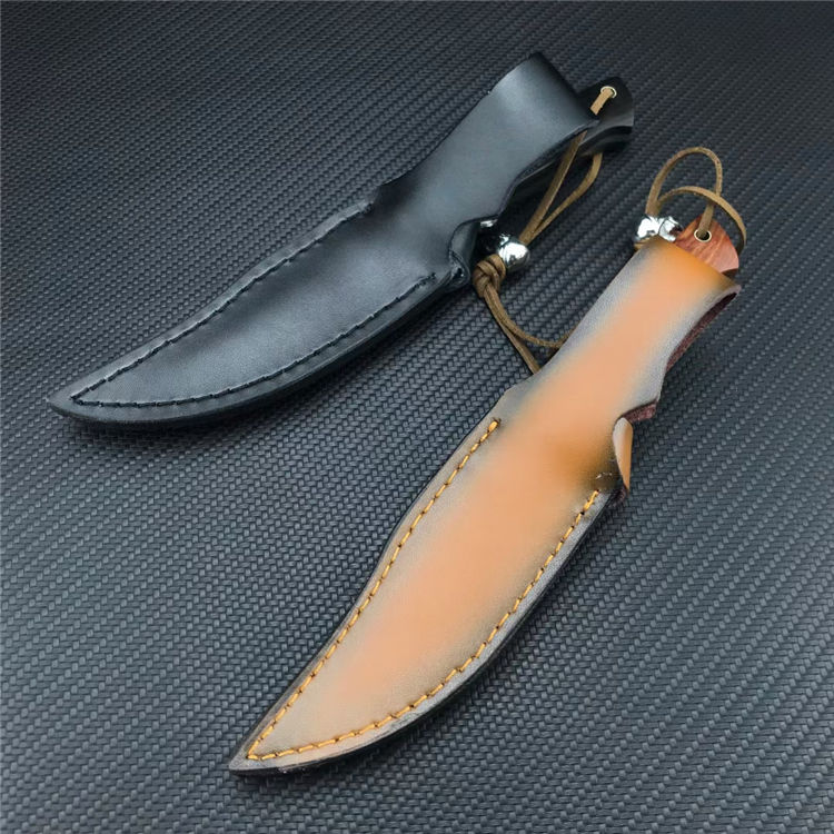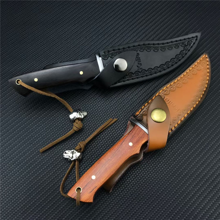 翼虎直刀 全长:19.2CM 刃长:10.2CM 刃宽:2.2CM 刃厚:3MM 刃材:7Cr13Mov 柄长:9CM 柄材:橄榄木染黑与红花梨木 净重:112G 重量:141G(含刀套) 鞘材:PU皮鞘