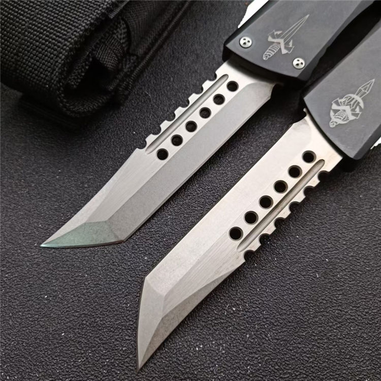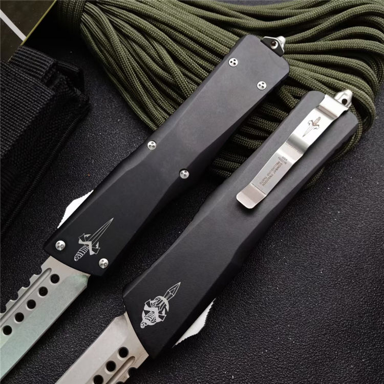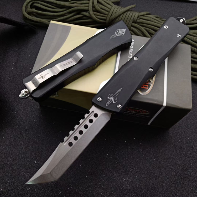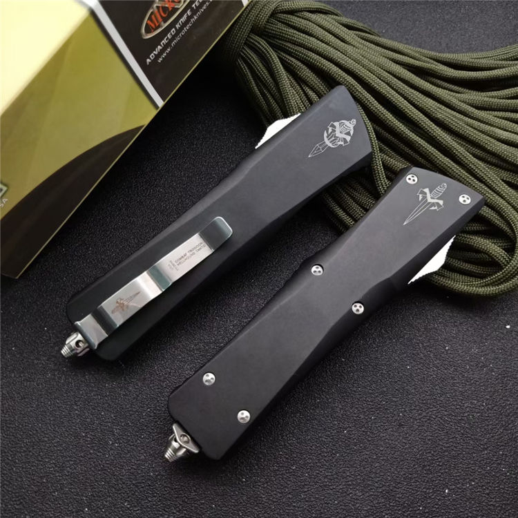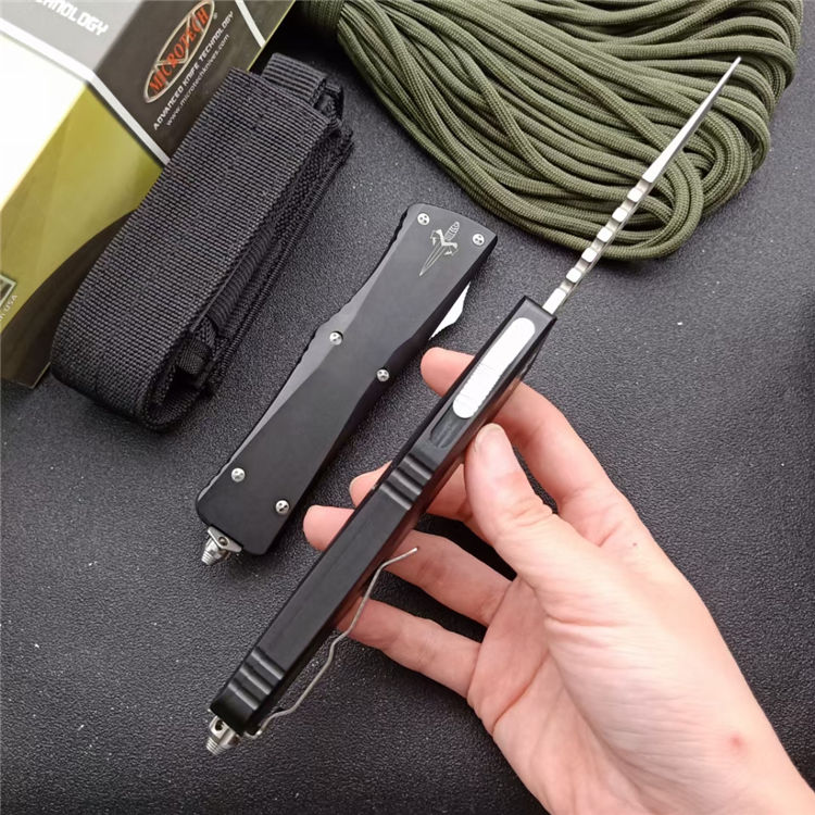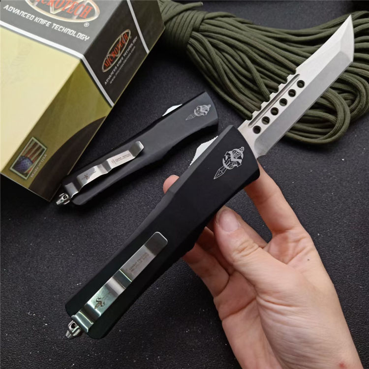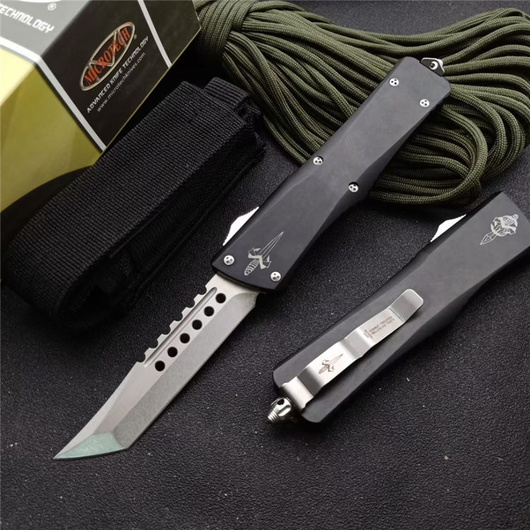 微技术121地狱之犬直出跳刀 全长:24.0cm 刃长:9.5cm 刃厚:3.4mm 刃宽:2.1cm 柄长:13.5cm 刃材:9CR18MOV缎光面,CNC数控水磨 硬度:58-60HRC 净重:134g 毛重:205g(含包装) 表面:T头石洗伴拉丝 柄材:T6061航空铝,全电脑锣成型,开合流畅 锁闭:直出弹簧刀 备注:带玻璃锥、腰夹,送拆刀工具