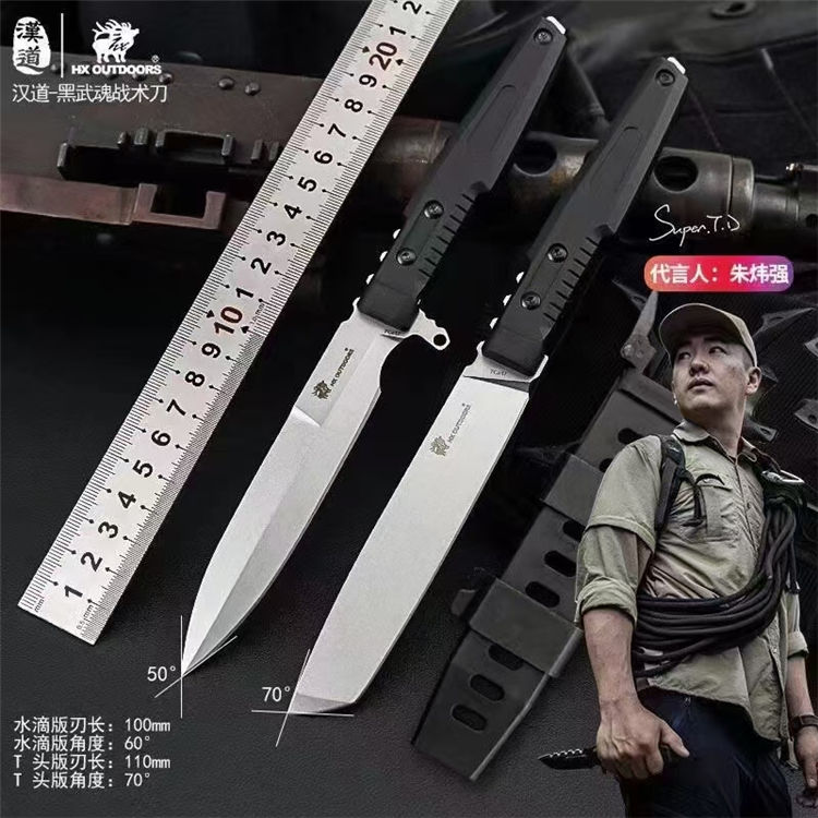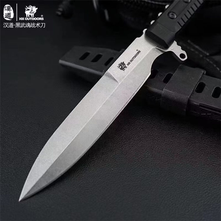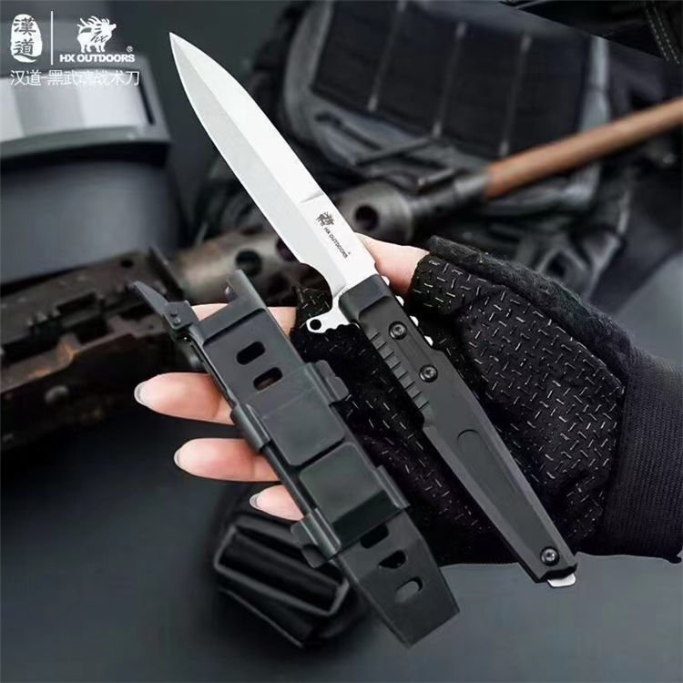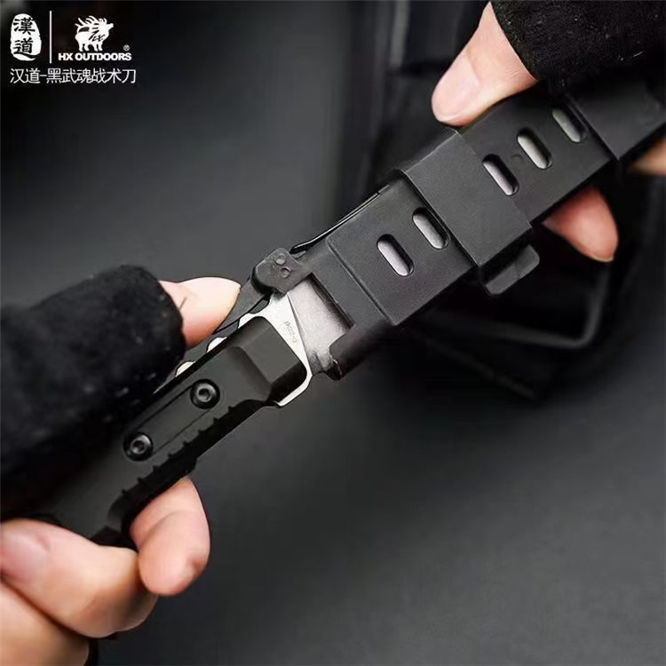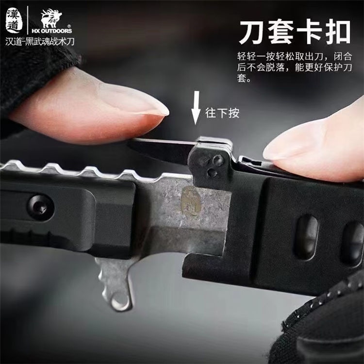 汉道黑武魂战术直刀 全长:235mm 刃长:110mm 刃厚:3.5mm 刃宽:21mm 柄长:120mm 重量:153g(含刀套) 刃材:7CR17钢 柄长铝合金 刀鞘:PP