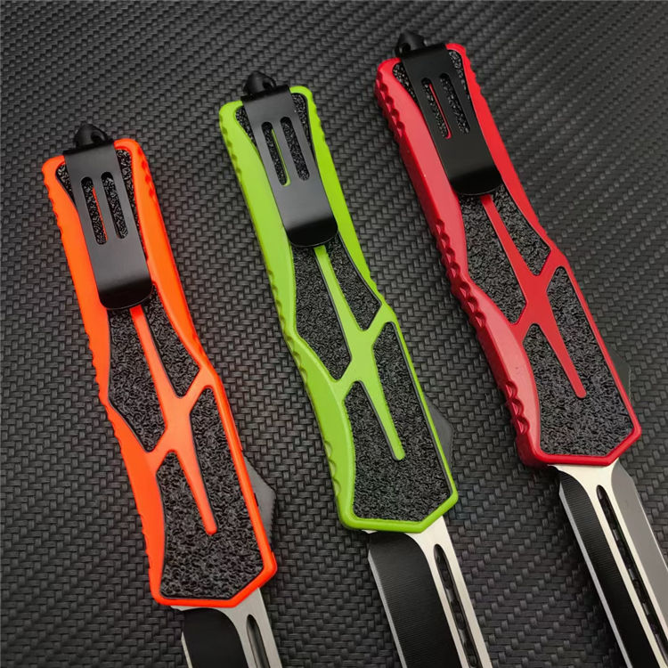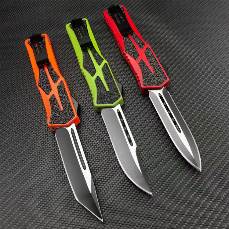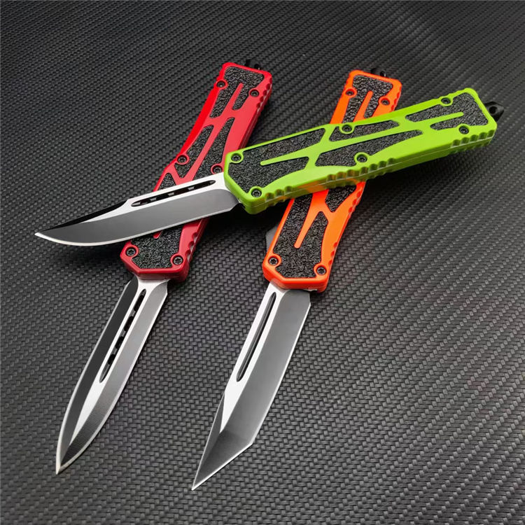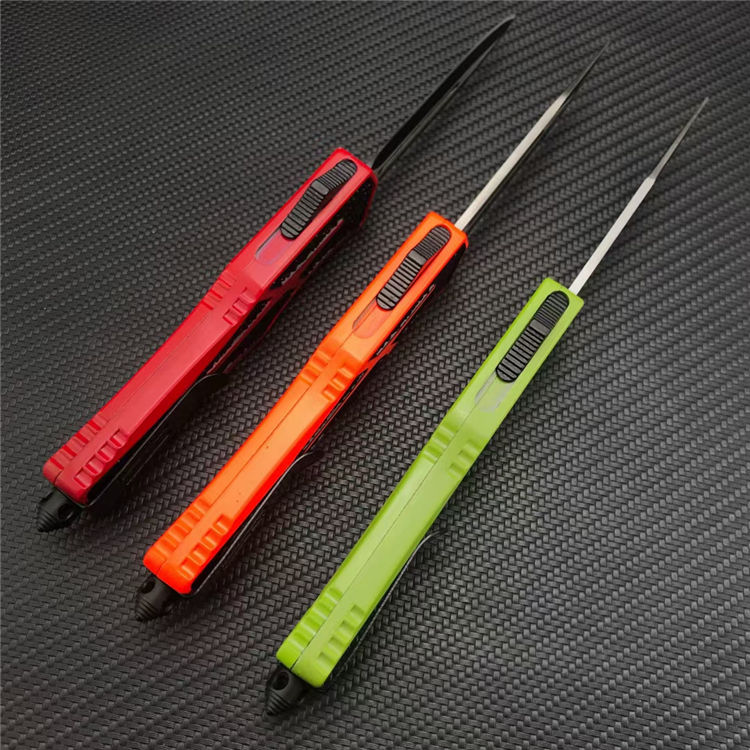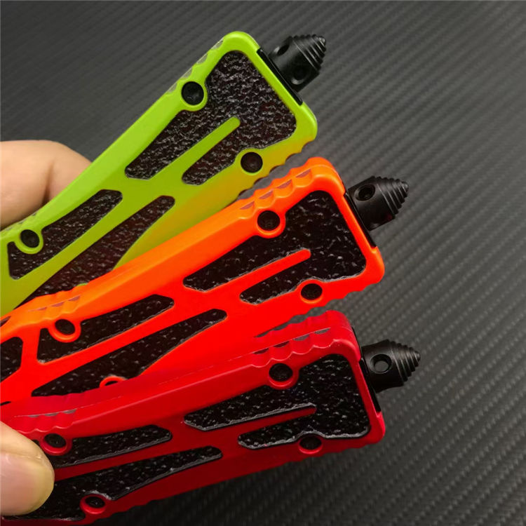 穿山甲直出跳刀 全长:23CM 刃长:9CM 刃宽:2CM 刃厚:2MM 刃材:440C 柄长:14CM 柄材:锌合金镶嵌防滑贴片 刀净重:213G 重量:250G(含刀套) 总重量:303G(含刀套.包装) 鞘材:尼龙