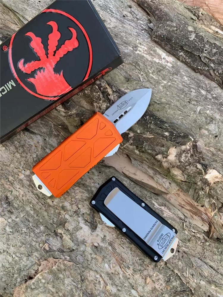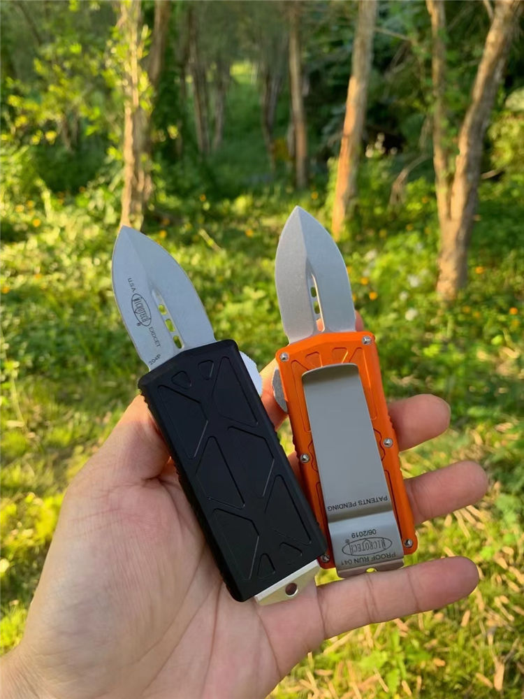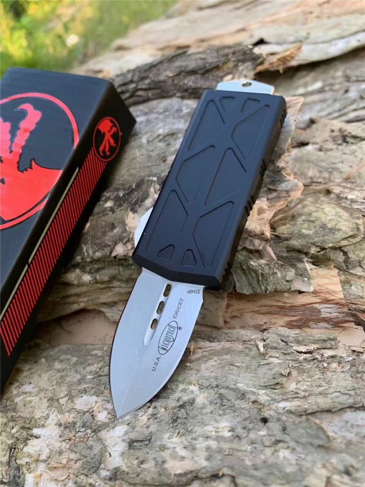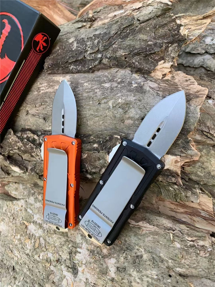 微技术Exocet飞鱼钱夹直出跳刀 全长:14.2cm 刃长:4.9cm 柄长:9.3cm 刃宽:2.8cm(最宽处) 刃厚:0.2cm 刃材:D2高速钢 手柄:航空铝(CNC) 硬度:59-60HRC 表面:发黑/喷砂 重量:96g(净重) 包装:彩盒
