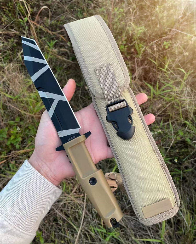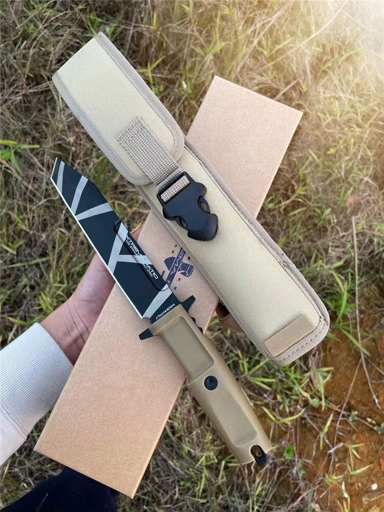 外贸版极端武力支点直刀 全长:310MM 柄长:130MM 刃厚:6MM 刃宽:32.5MM 最宽:54.5MM 材质:进口N690钢 硬度:58-60HRC 热处理:专业真空深冷油淬 结构:一体龙骨设计 净重:约282G 手柄:克拉通手柄有两种颜色选择(沙漠色和黑色) 刀鞘:配高品质尼龙袋鞘内带ABS硬固定鞘锁定 包装:高品质手工盒子配说明书,签名标签