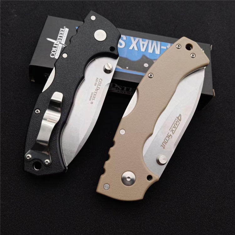 冷钢4-Max Scout侦察兵折刀 型号:62RQ 全长:224mm 刃长:90mm 柄长:135mm 刃厚:3.5mm 刃材:AUS-10A钢 硬度:58-59HRC 表面处理:石洗 柄材:Griv-Ex尼龙玻璃纤维 结构:超级背锁 口袋:双灵巧不锈钢口袋/皮带夹 重量:199g 包装:彩盒