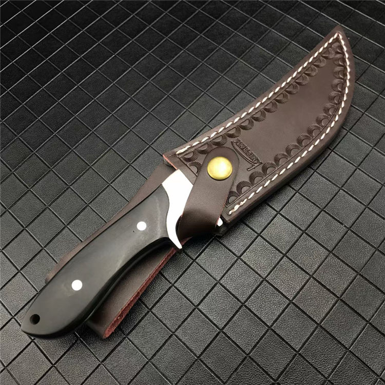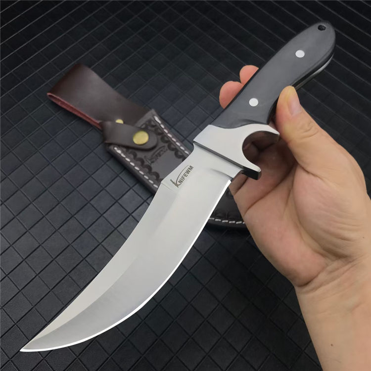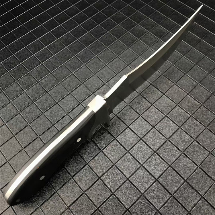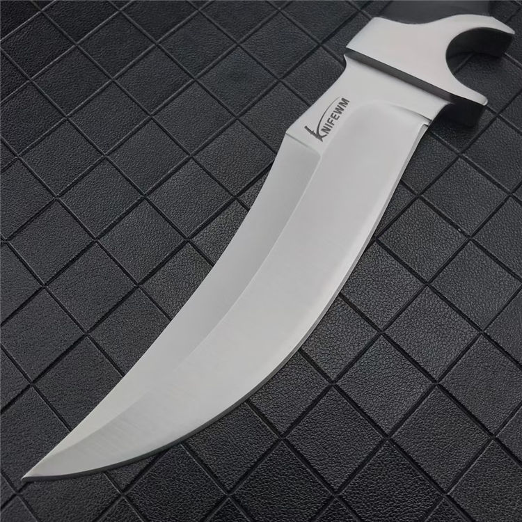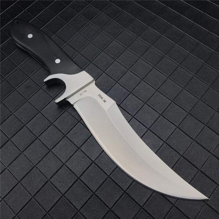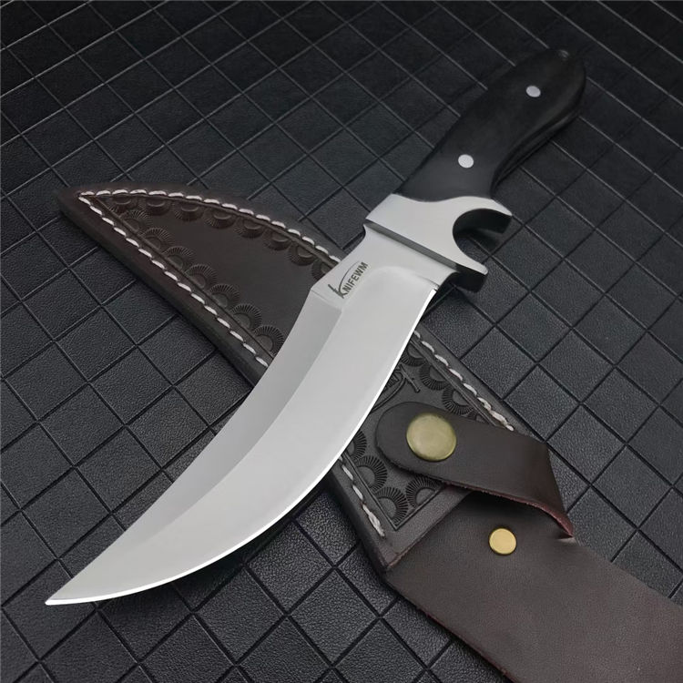 断月弯刀 全长:27CM 刃长:15CM 刃宽:3.5CM 刃厚:4MM 刃材:5Cr13Mov 柄长:12CM 柄材:420钢护手+黑檀木手把 净重:245G