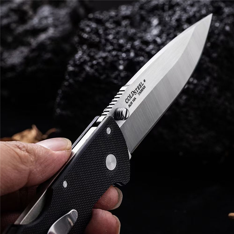 冷钢26WT轻灵折刀 全长:20.8CM 刃长:8.8CM 柄长:12CM 刃宽:2.6CM 刃厚:0.3CM 净量:120克 总重量:150克 刃材:9CR13 硬度:59-60HRC(真空热处理) 表面:砂光+拉丝 柄材:G10 备注:配皮带夹专用包装盒,数控水磨 采用高精密CNC