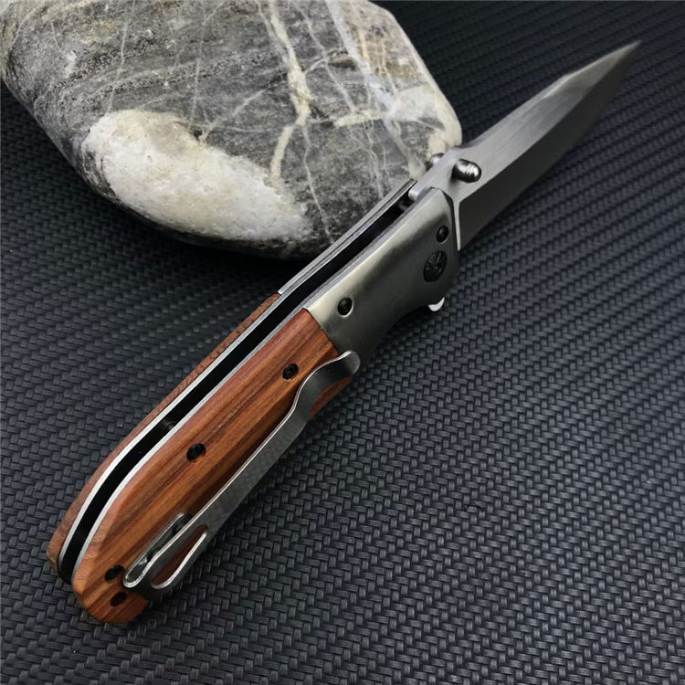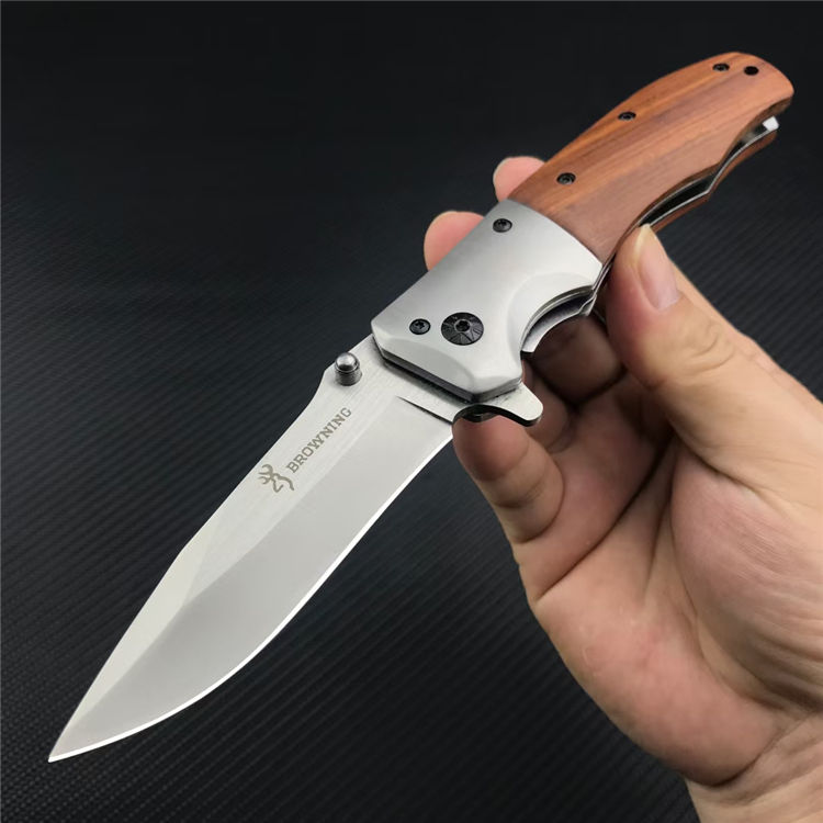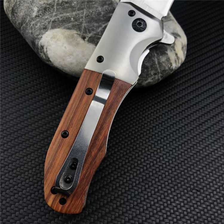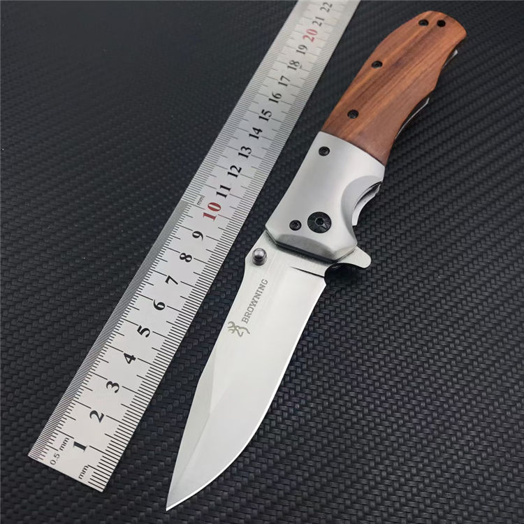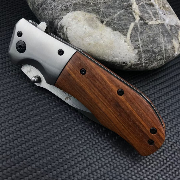 勃朗宁DA51快开折刀 总长:20.6CM 刃长:9CM 刃宽:2.5CM 刃厚:3MM 材质:5Cr13Mov 柄长:11.6CM 柄材:彩木+不锈钢 柄宽:25MM 柄厚:12MM 重量:166G