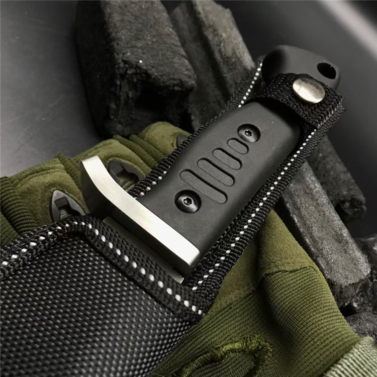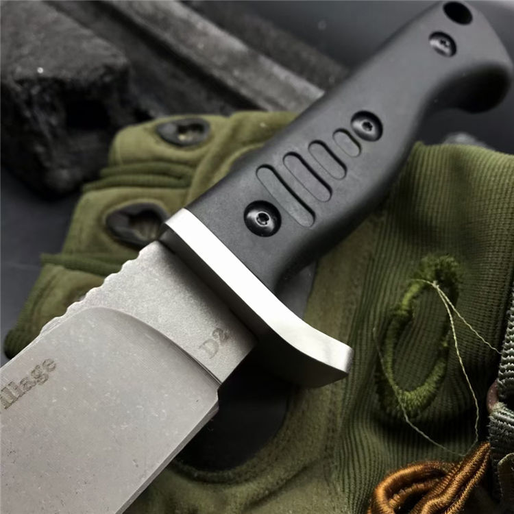 博克丛林生存直刀 全长:280mm 刃长:150mm 刃厚:5mm 刃宽:35mm 刃材:D2钢 表面:石洗 硬度:58HRC 柄材:ABS 重量:257克 刀套:尼龙套