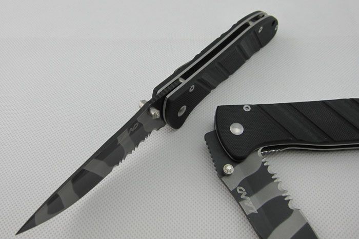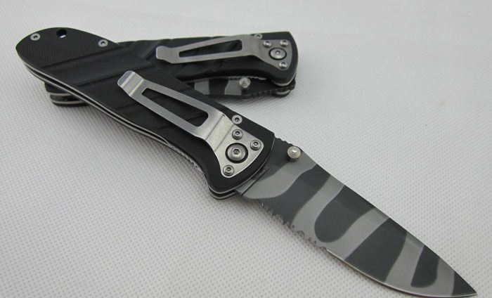 全 长: 20.3cm 刃 长: 8.8cm 刃 宽: 3.0cm(最宽处) 闭 合: 11.0cm(柄长) 刃 材: 440 不锈钢 硬 度: 56 HRC 表 面: 虎纹 刃 厚: 0.28cm 柄 材: G10 净 重: 80.0g 包 装:原厂纸盒 锁 闭: 线锁 其 他:配附背夹,半齿开锋