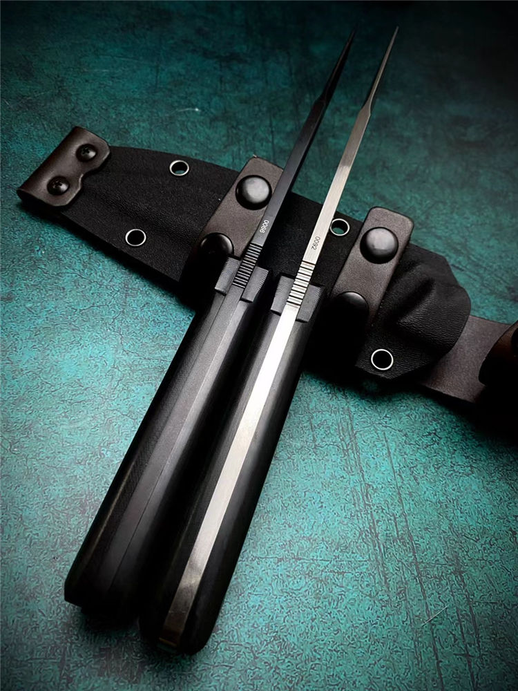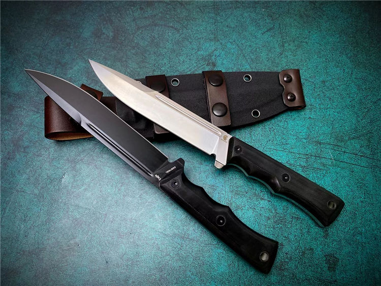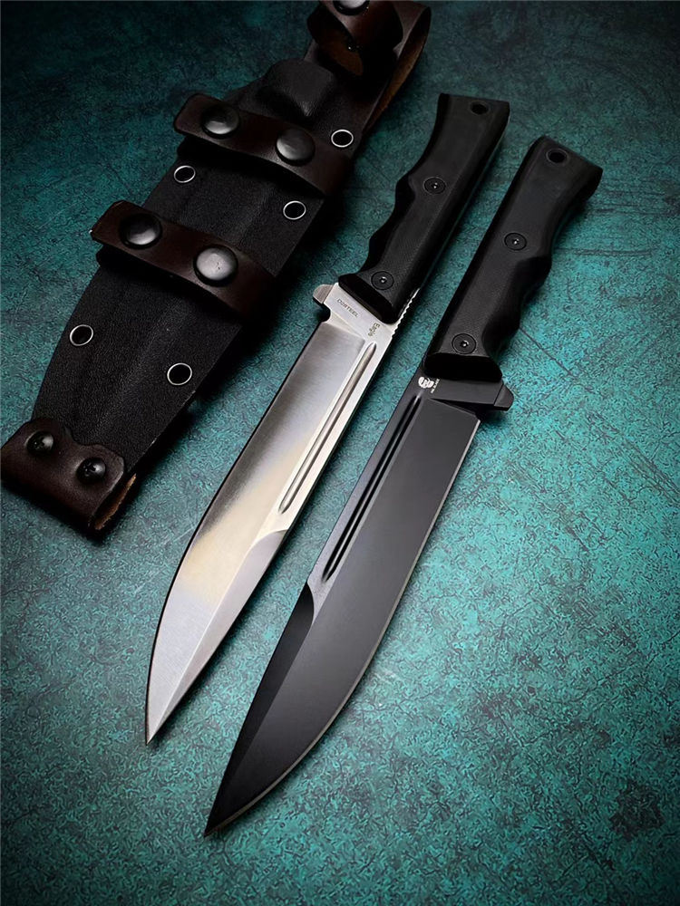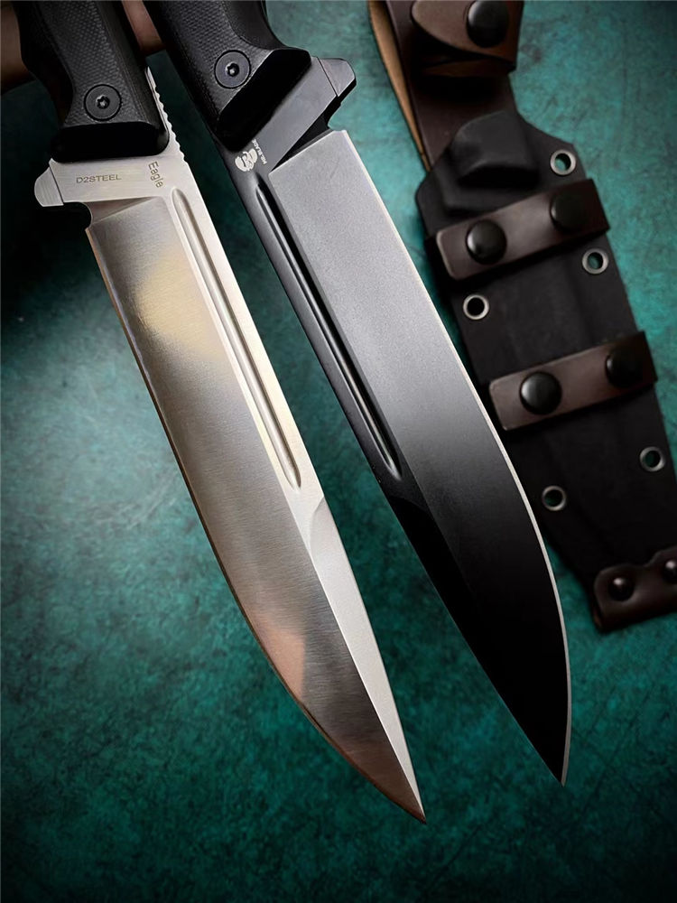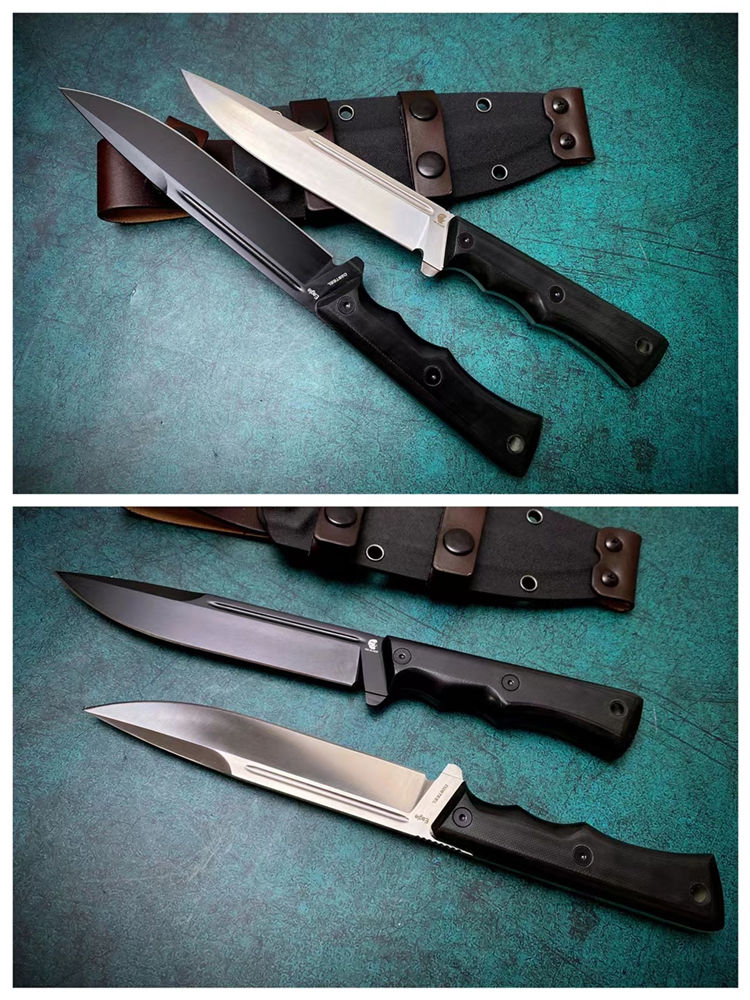 乌克兰神鹰直刀 全长:277mm 刃长:145mm 刃厚:4.5mm 刃宽:26.5mm 刃材:D2 硬度:60-61HRC 重量:265g 该刀Eagle是Military系列的经典款式,刀身修长距刀尖69mm处开假刃以提升穿刺能力,4.5mm厚的D2刃材经科学热处理后硬度达到60-61HRC,符合人体工学的G10手柄操控性极强。 配战术K鞘,可以360度旋转的背夹,在紧急情况下可以轻松实现快速单手出刀