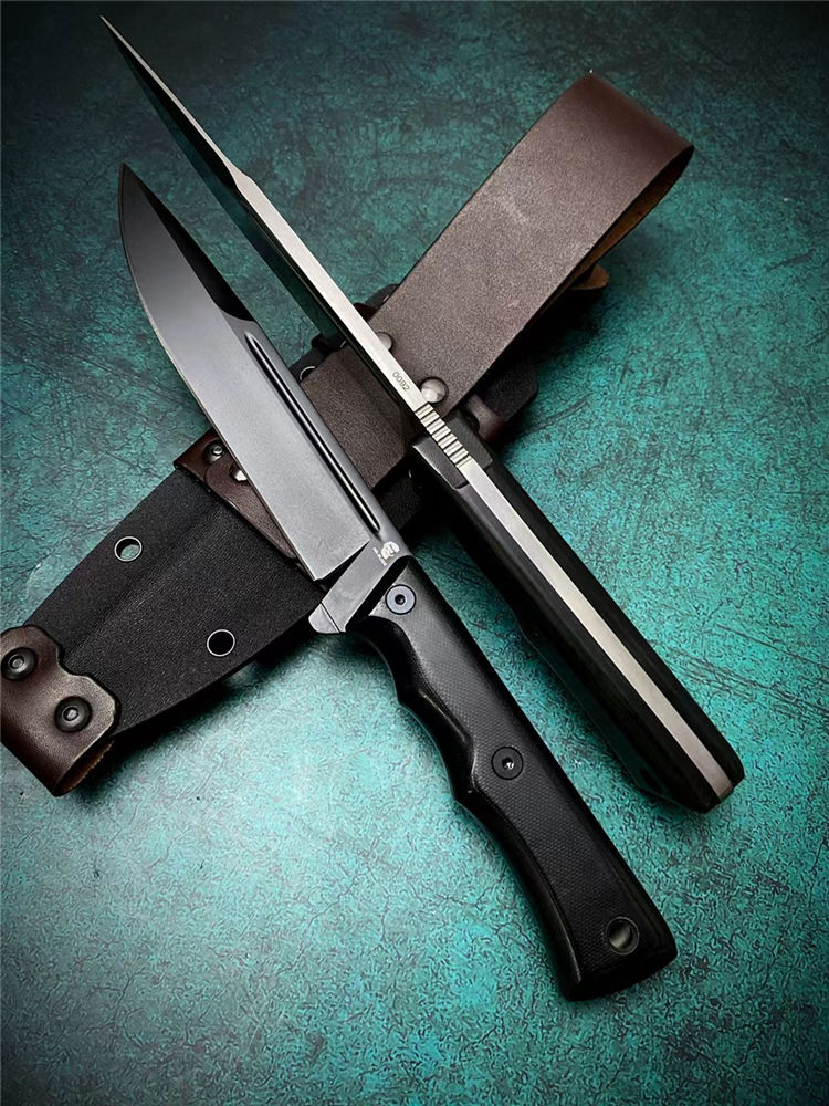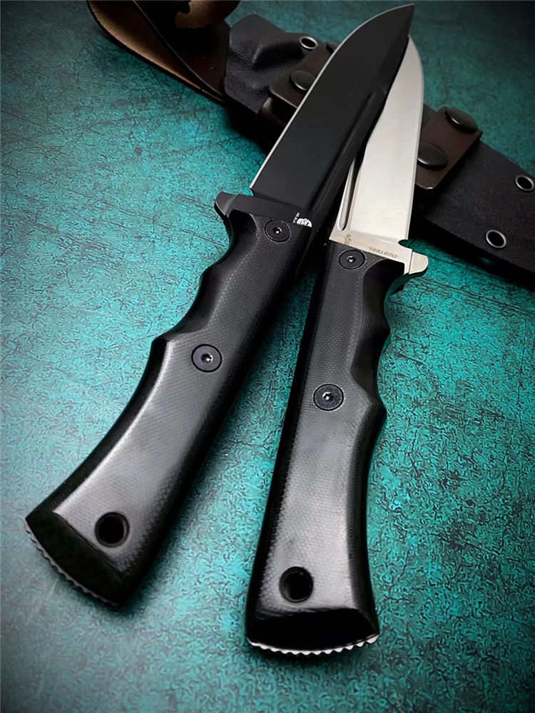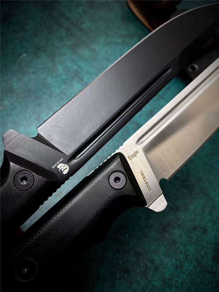 该刀Eagle是Military系列的经典款式,刀身修长距刀尖69mm处开假刃以提升穿刺能力,4.5mm厚的D2刃材经科学热处理后硬度达到60-61HRC,符合人体工学的G10手柄操控性极强。