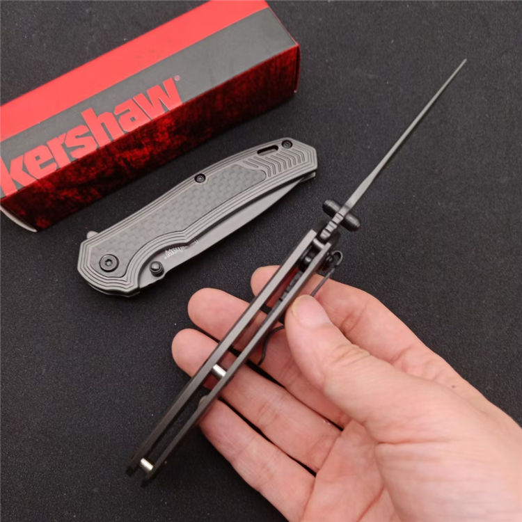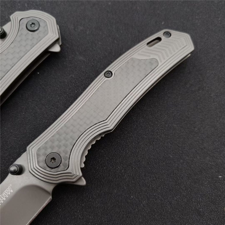 卡秀8310折刀 全长:180mm 刃长:75mm 刃宽:23mm 刃厚: 2.5mm 柄长:104mm 刃材:8cr13mov 柄材:碳纤维+钢 硬度:58-60HRC 净重:100g 包装:彩盒