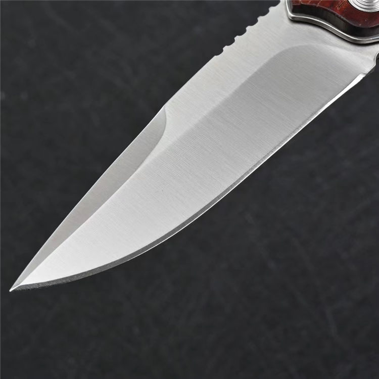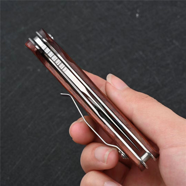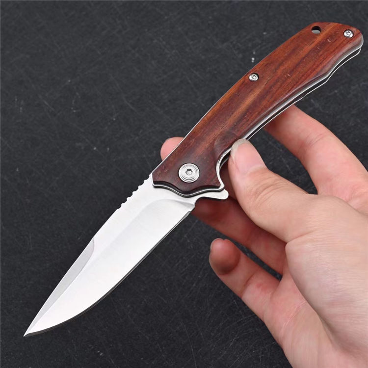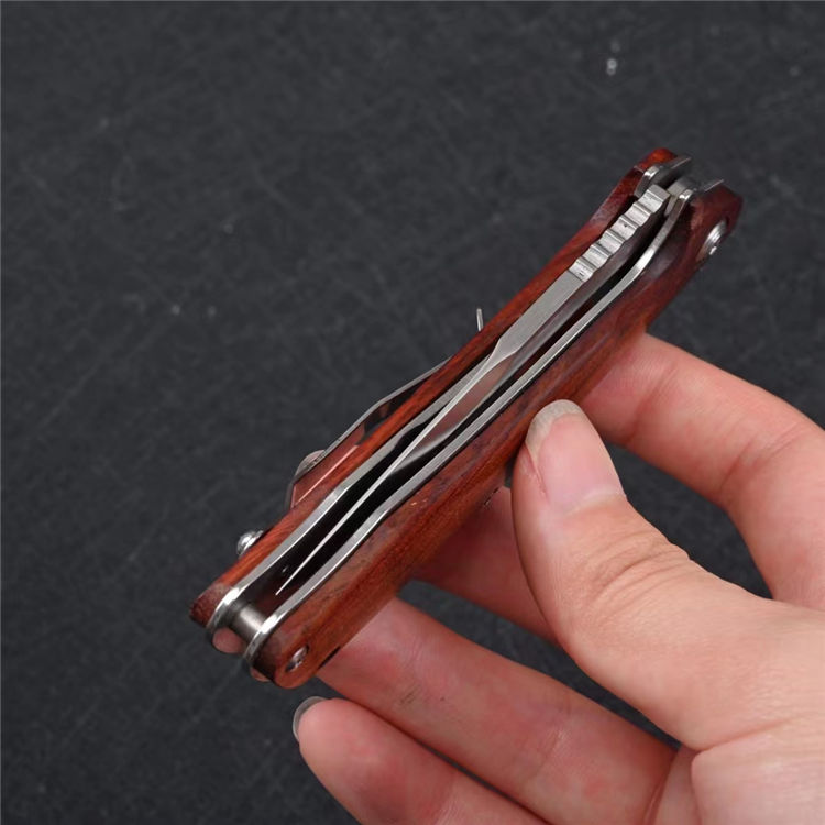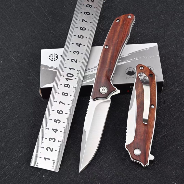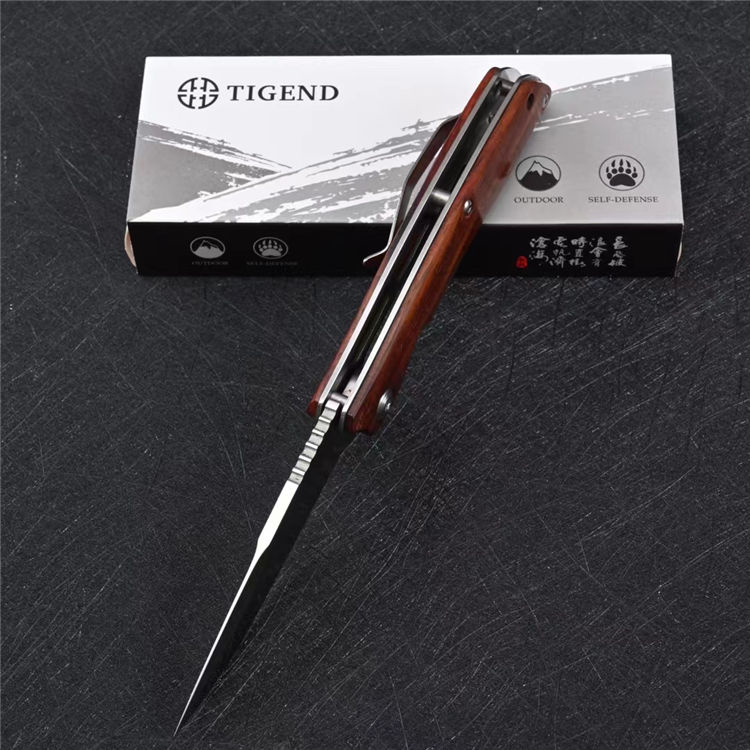 长风暗战折刀 全长:178mm 刃长:75mm 柄长:106mm 刃厚:2.8mm 刃宽:22mm 刀重:65g 毛重:111g 钢材:8Cr14MoV 柄材:黄檀木 硬度:57-59HRC 表面处理:砂光 包装:礼盒