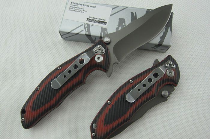 三刃木(LAND)908T折刀(枪钛版) 全 长:20.0cm 刃 长:8.5cm 柄 长:11.5cm 刃 宽:2.7cm(最宽处) 刃 厚:3.3mm 刃 材:440C 硬 度:57HRC 刀 柄:双色G10 表 面:镀钛 锁定方式:侧锁 重 量:220.0克 备 注:带背夹