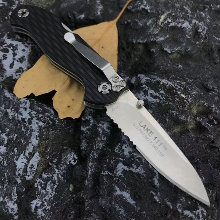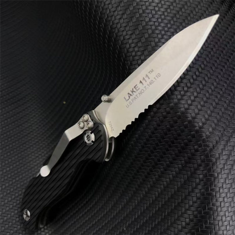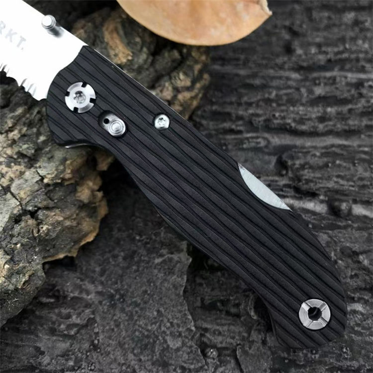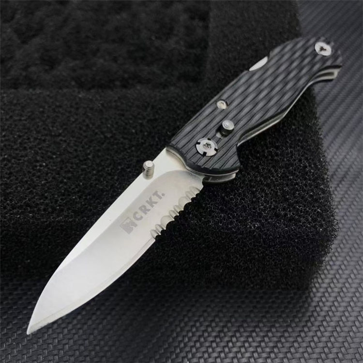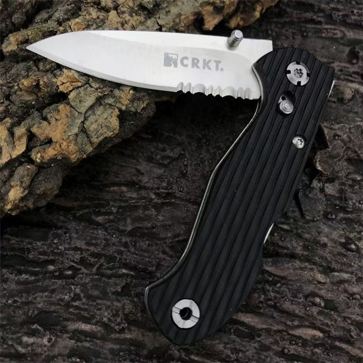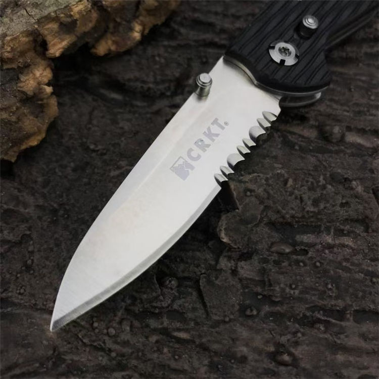 哥伦比亚CRKT湖半齿折刀 全长:15.2cm 刃长:6.5cm 柄长:8.7cm 刃厚:0.3cm 刃宽:2.2cm 刃材:8Cr17MOV 柄材:尼龙波纤 硬度:58HRC 表面处理:砂光