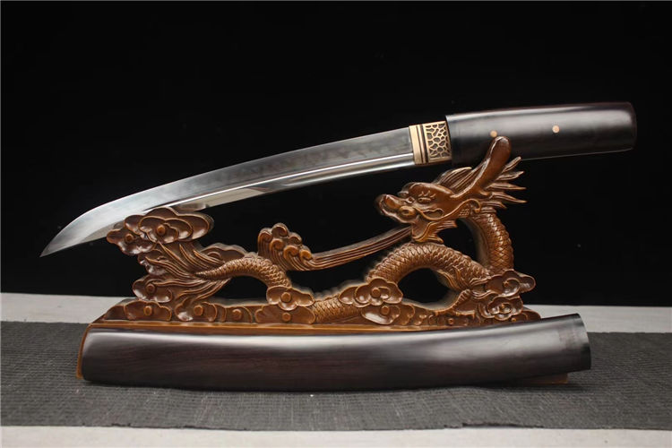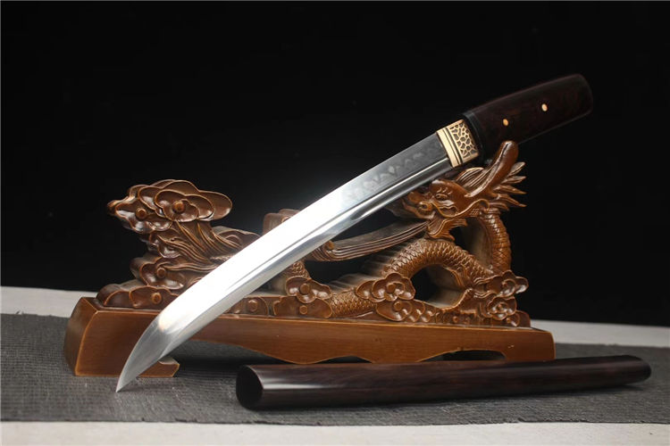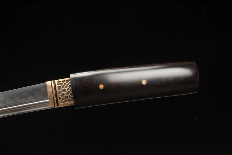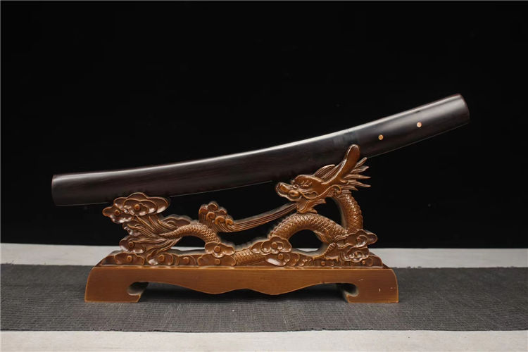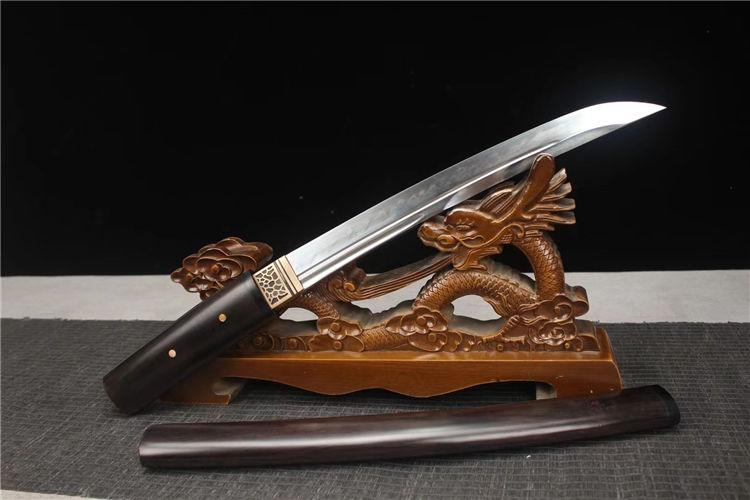 新款12寸短款巴西黑檀木一体镶牛角T10钢烧刃镜面全磨居合武士刀—黑檀木居合肋