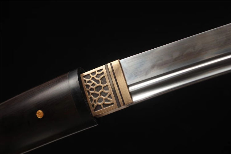 12寸T10钢烧刃居合武士刀 全长:52cm 刃长:32cm 柄长:16cm 刃宽:3.2cm 赠高端锦盒 新款12寸短款巴西黑檀木一体镶牛角T10钢烧刃镜面全磨居合武士刀—黑檀木居合肋