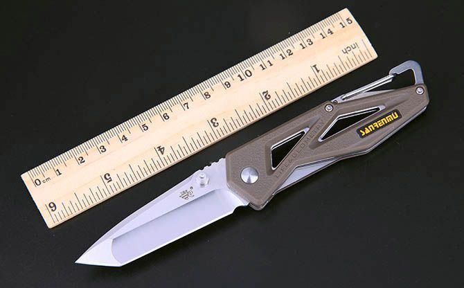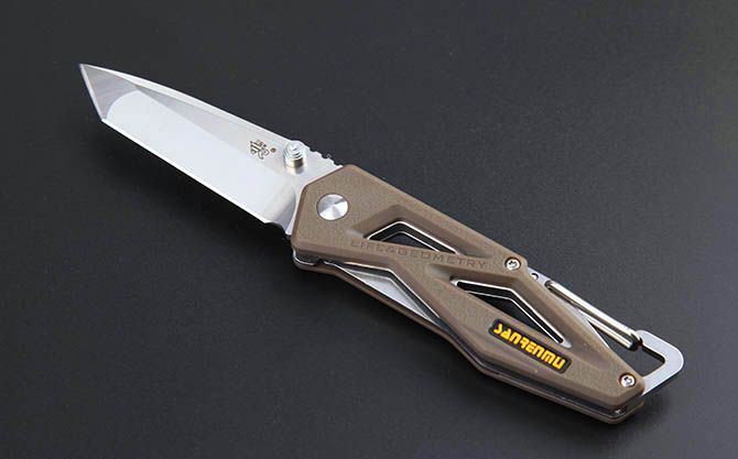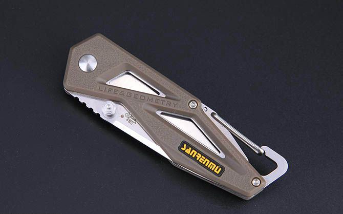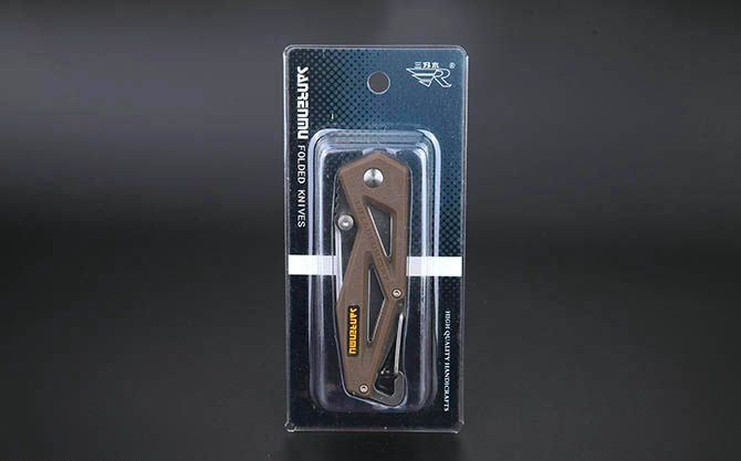 三刃木7049(背扣,拨钉锁) 【全长】16.5cm 【刃长】6.8cm 【刃宽】2.3cm 【刃厚】2.5mm 【刃材】8Cr13Mov 【表面】钢本色 【硬度】59HRC 【柄长】9.7cm 【柄材】磨砂G10柄镂空设计(带有背夹) 【重量】78克(含包装) 【包装】插卡包装 【锁型】线锁+安全锁 【其他】快挂(可做酒瓶起子使用)