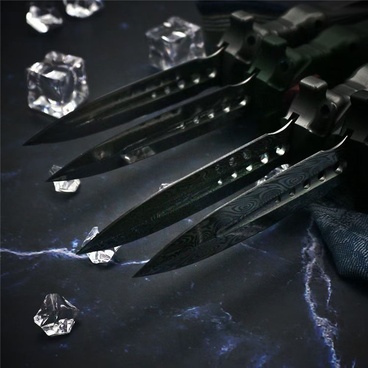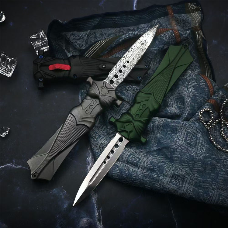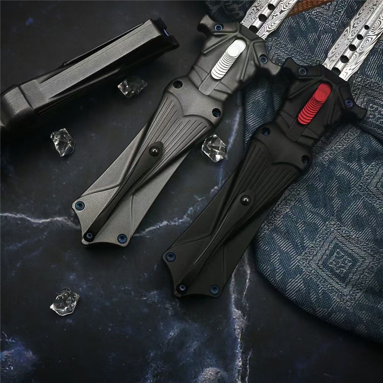 美人鱼OTF直出跳刀 出品人:Nimoknives 全长:218mm 刃长:90mm 手柄:128mm 刃厚:3mm 宽度:17mm 硬度:58-60HRC 刃材:国产大马士革钢,RK提供瑞典粉末大马士革钢 柄材:航空铝6061-T6 净重:127g