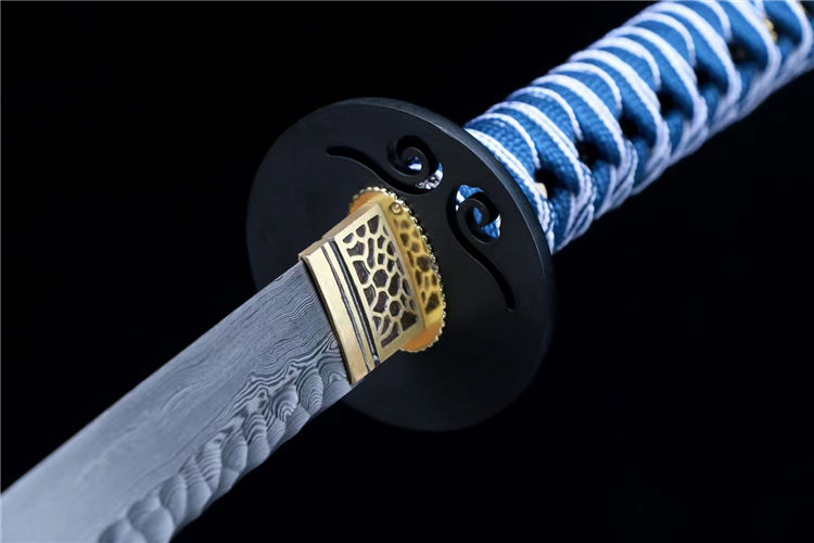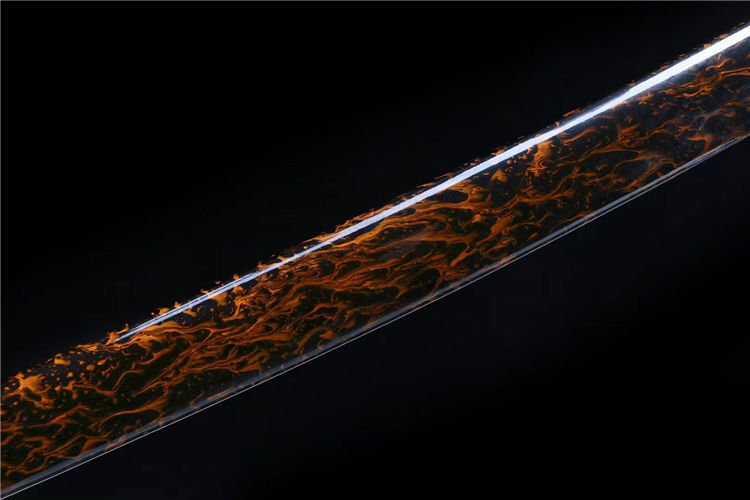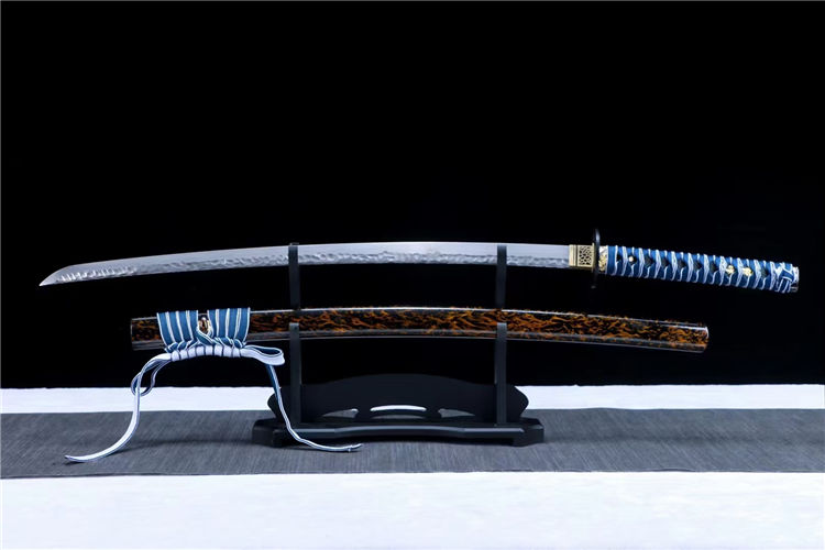 争锋武士刀 刃材:采用高性能百炼钢手工古法锻造,古法热处理,纯手工雕刻石纹工艺、纯手工研磨工艺 装具:纯铁渡黑加厚 鞘材:独家实木流火上漆鞘 配置:高端蓝白下续 适合:收藏 防身 情侣配送 乔迁送礼 武术健身 精美摆设 赠品:高端锦盒、护理油 性能:锋利度极高、轻松横扫一排水、秒斩草席、韧性十足、硬度极高、砍铁无压力 工艺:刀身千锤百炼、经打胚、热锻、铲、锉、磨、热处理(淬火)回火、初修、精修、等龙泉古法数十道手工制作而成