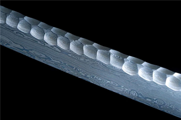 刃材:采用高性能百炼钢手工古法锻造,古法热处理,纯手工雕刻石纹工艺、纯手工研磨工艺
