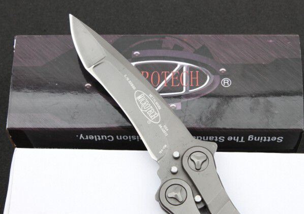 微技术蝴蝶刀 全长:23.2CM 刃长:9.9Cm 折叠长度:13.3Cm 刀刃材料:7咯钢 硬度:57 刀柄材料:不锈钢 重量:200g Microtech微技术的Metalmark甩刀,造型奇特甩柄,不对称的美感,握感一流