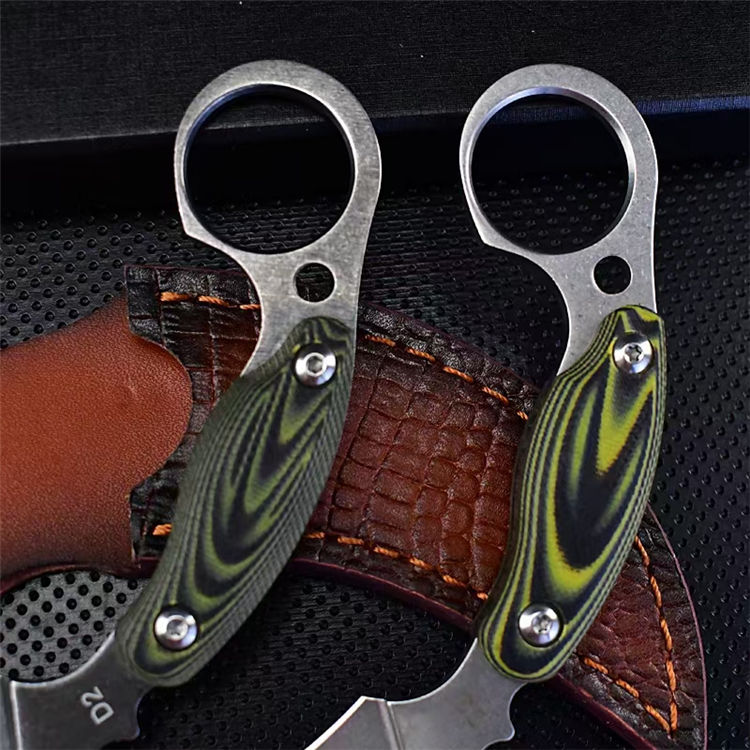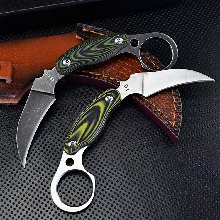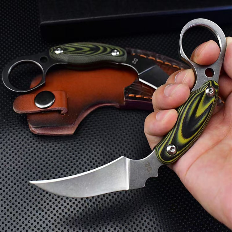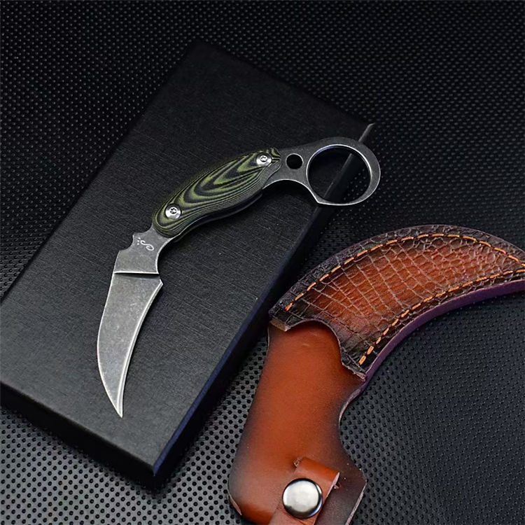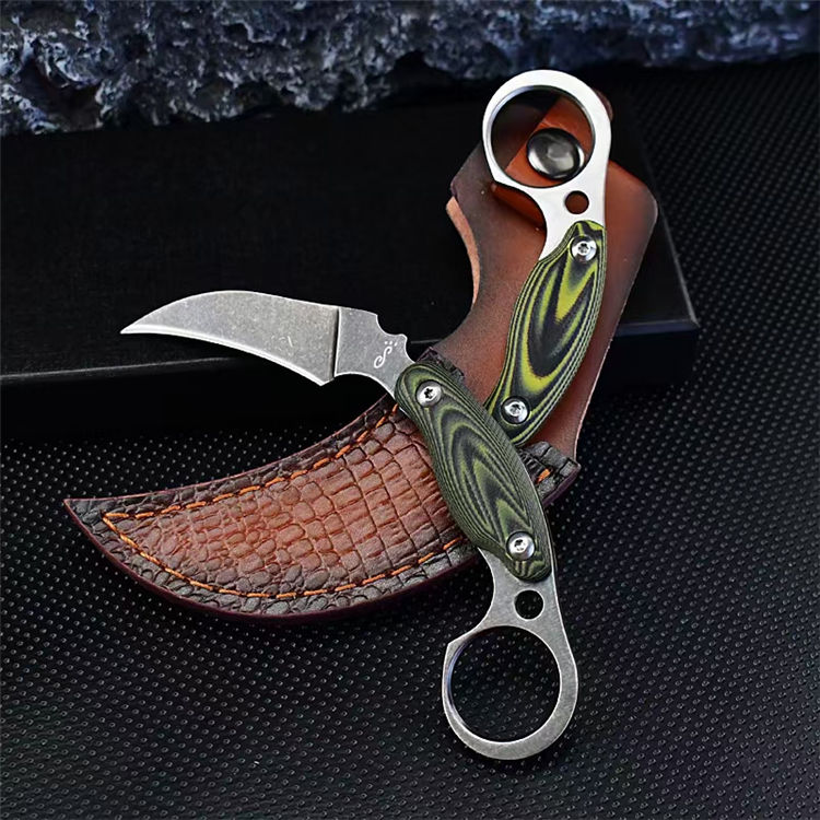 皮套版田边幽灵爪刀 全长:165MM 刃长:70MM 柄长:95MM 重量:约75克 钢材:D2钢 硬度:60HRC 柄材:一体龙骨+双色G10 其他:锋利,配皮套,礼盒