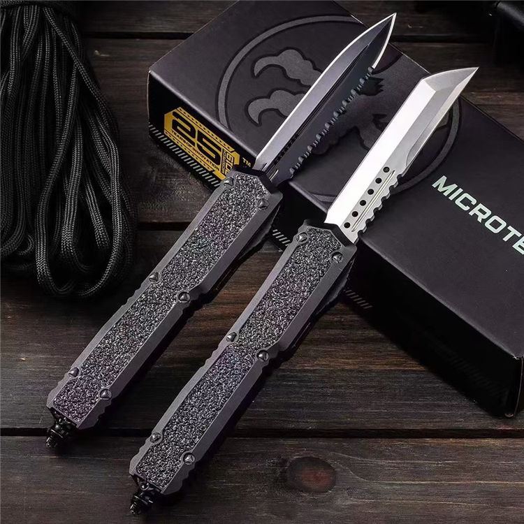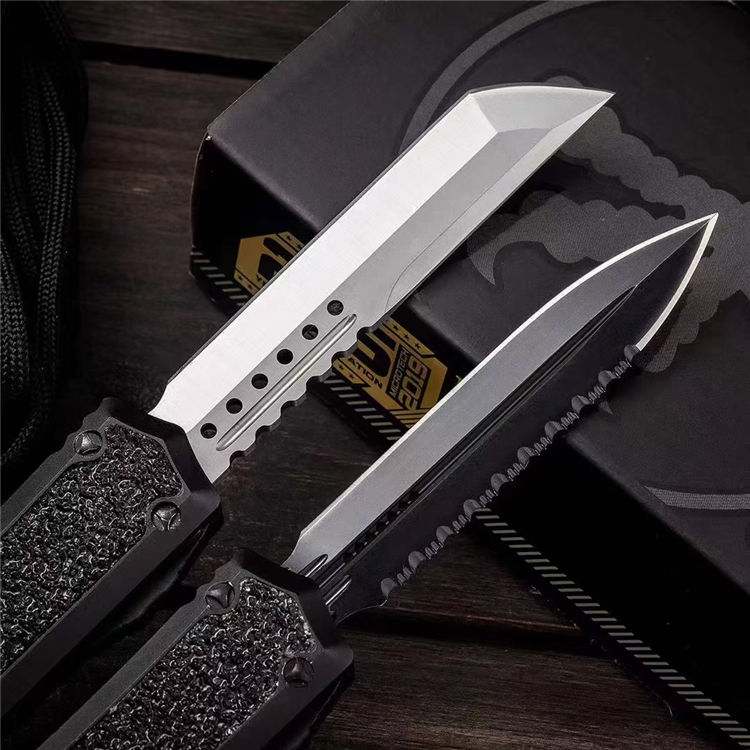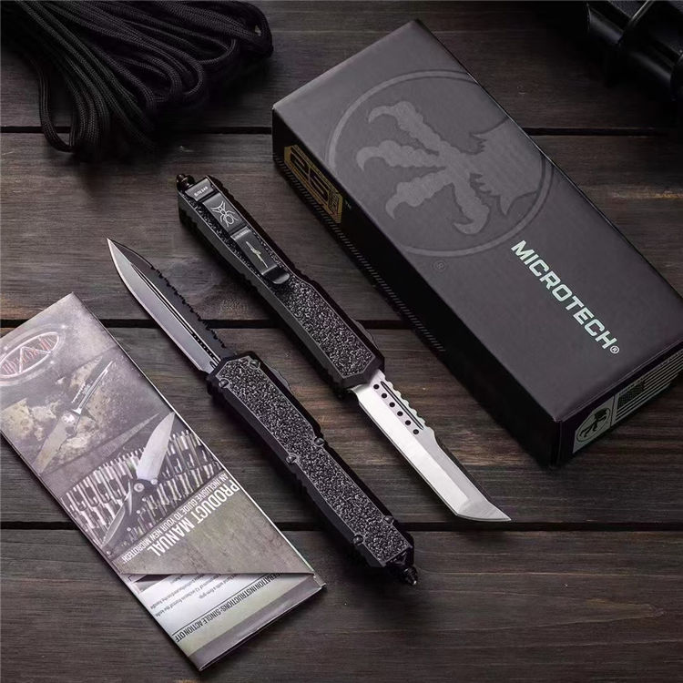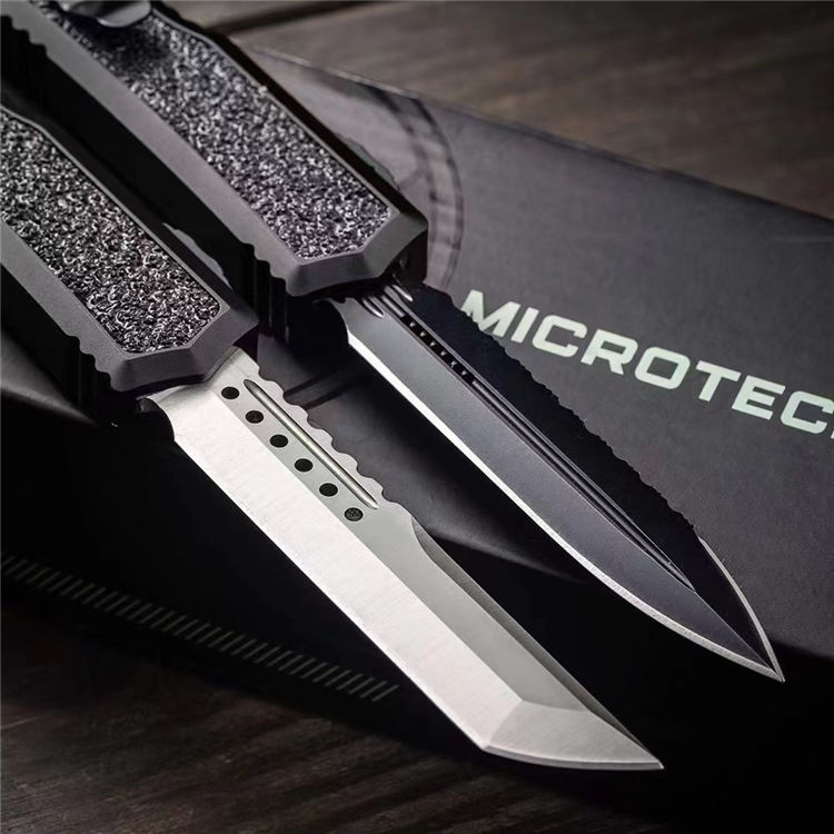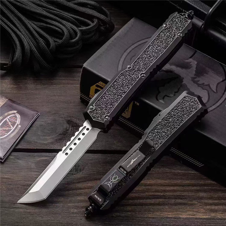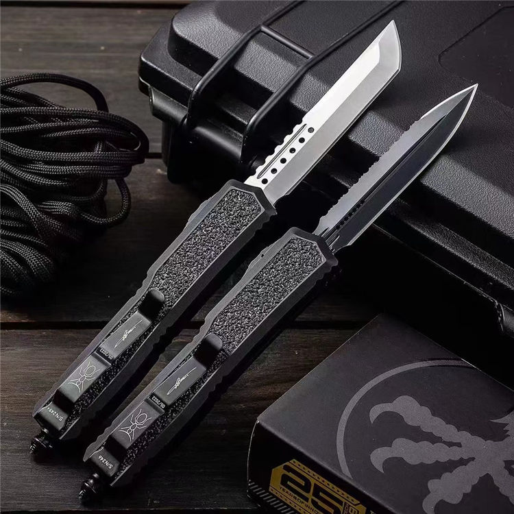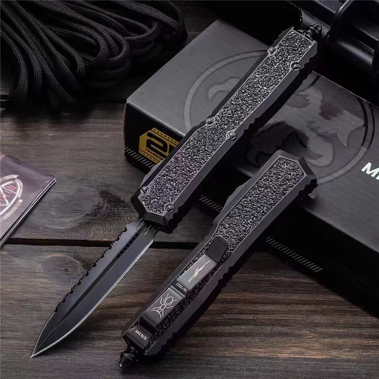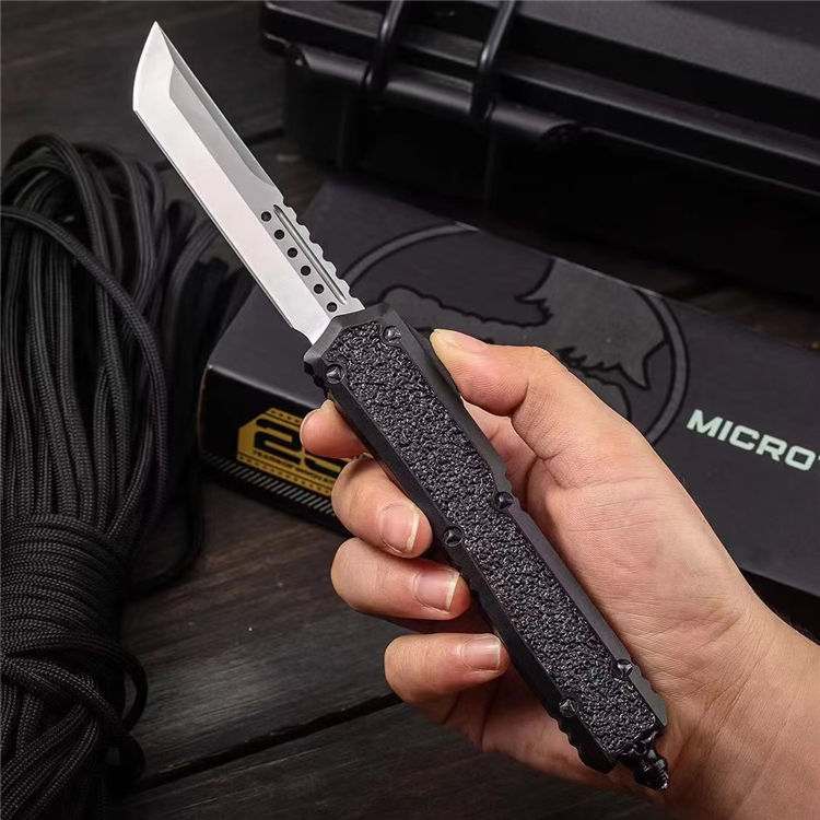 复刻版微技术海军蚂蚁直出跳刀 总长:210mm 刃长:87mm 柄长:125mm 刃厚:3mm 刃材:D2高速钢 柄材:T6061航空铝材+镶嵌金刚砂+高碳钢尾部玻璃锥 硬度:58-60HRC 工艺:镀钛黑+数控机床水磨处理 柄工艺 :阳极氧化涂层特硬 表面:自动直线跳出+自动收刃 重量:110g 产品描述:任何一个有过作战经验的人都知道战争中减轻不必要的重量可以提高灵活作战机动性,外贸款式机加工几乎都来自CNC数控机床,所有配件精确到丝公差位,搭配米花螺丝及专用礼盒套装