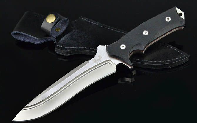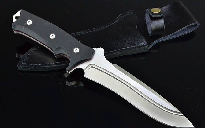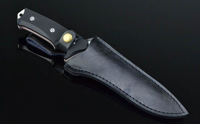 全 长:29cm 刃 长:16cm 刃 宽:4.5cm(最宽处) 刃 厚:5.8mm 柄 长:13cm 表 面: 砂光+拉丝 刃 材: 9Cr18Mov 硬 度: 57HRC 柄 材: G10 重 量:473克(含包装) 包 装:皮套