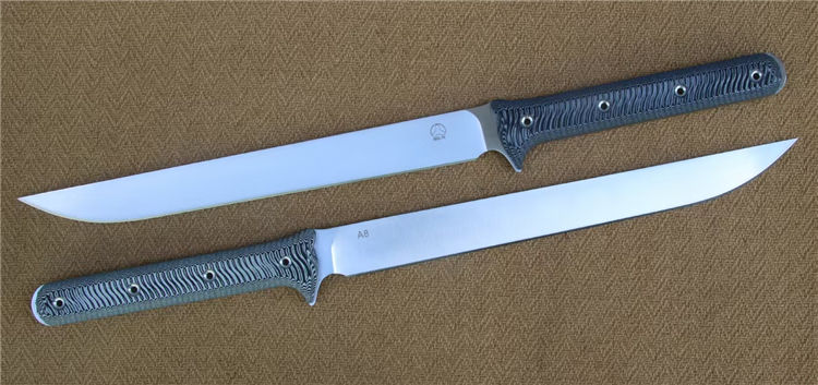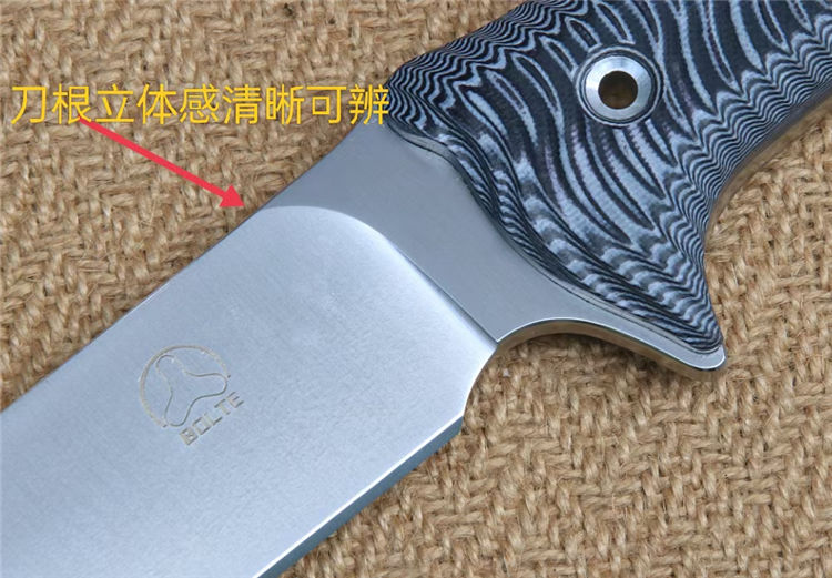 博尔特沼泽鼠直刀 全长:580mm 刃长:357mm 刃宽:39mm 柄长:217mm 刃厚:5.7mm 刃面:数控太平磨砂光二次抛腊光 类型:以锋利度,重砍度,韧性保持度最出色 开刃方式:二次开刃 刃材:A8钢 热处理:真空淬油热处理 硬度:60+-0.5HRC 柄材:黑白G10+8mm铝管CNC成型防滑纹 包装:精美纸盒+护刀油+伞绳 净重:760克(不含包装) 刀鞘:配置美板K鞘+可调节强化版尼龙背带