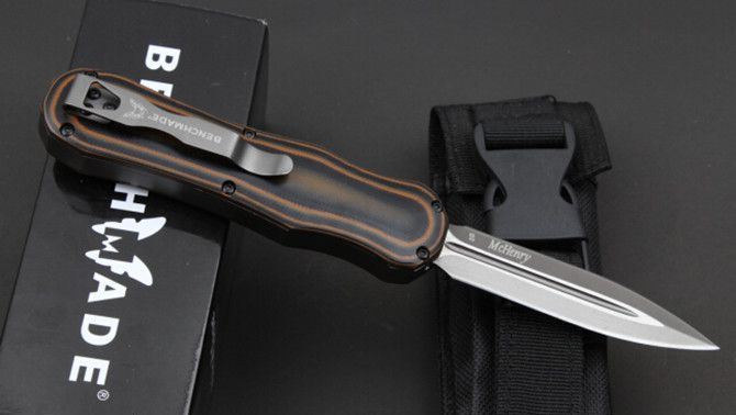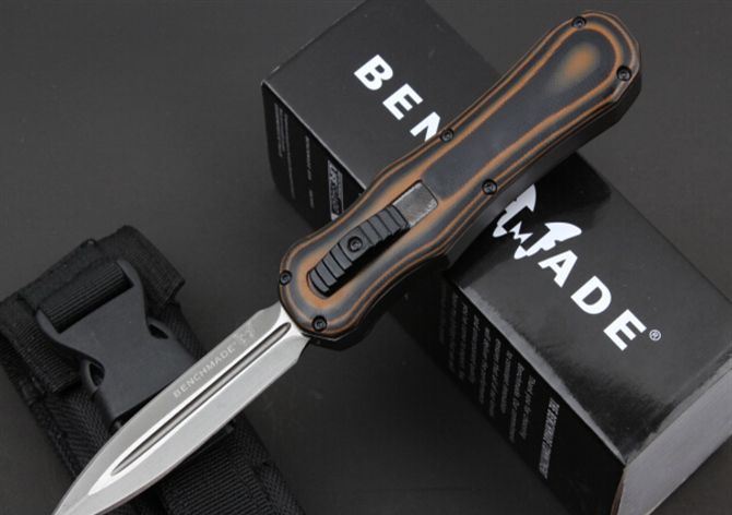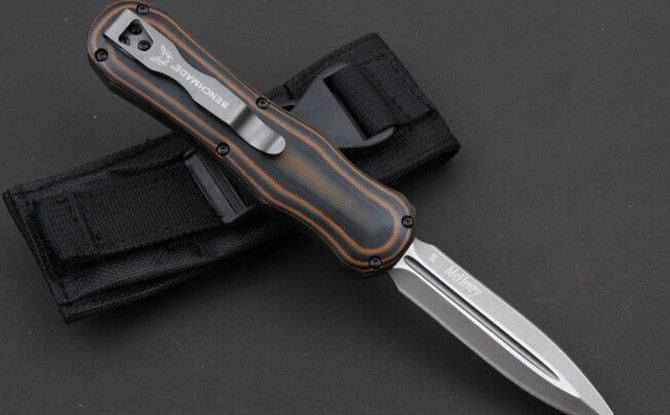 新版—彩色G10柄蝴蝶双锋全刃 全 长: 22cm 刃 长: 9.0cm 刃 厚: 3mm 刃 材: 440 硬 度: 57HRC 刀 重: 245g 毛 重: 390g 柄 材: 彩G10 刀 鞘: 尼龙 锁 闭: 直出弹簧刀