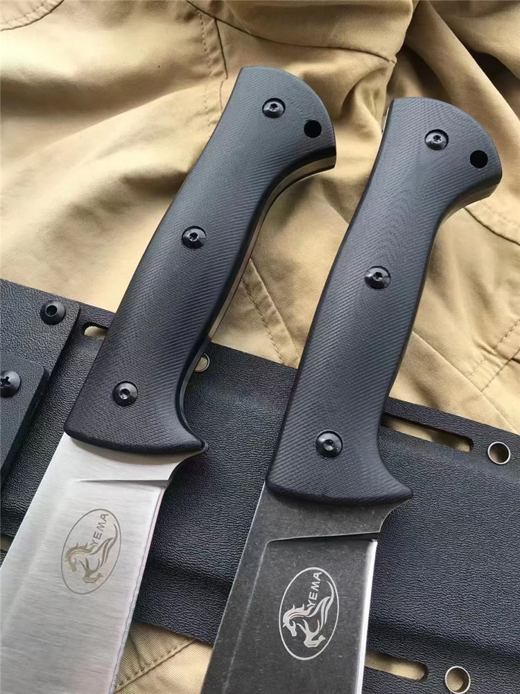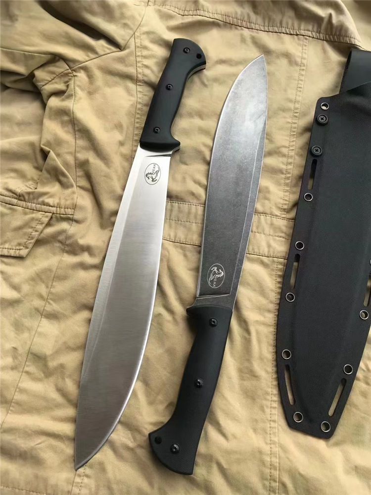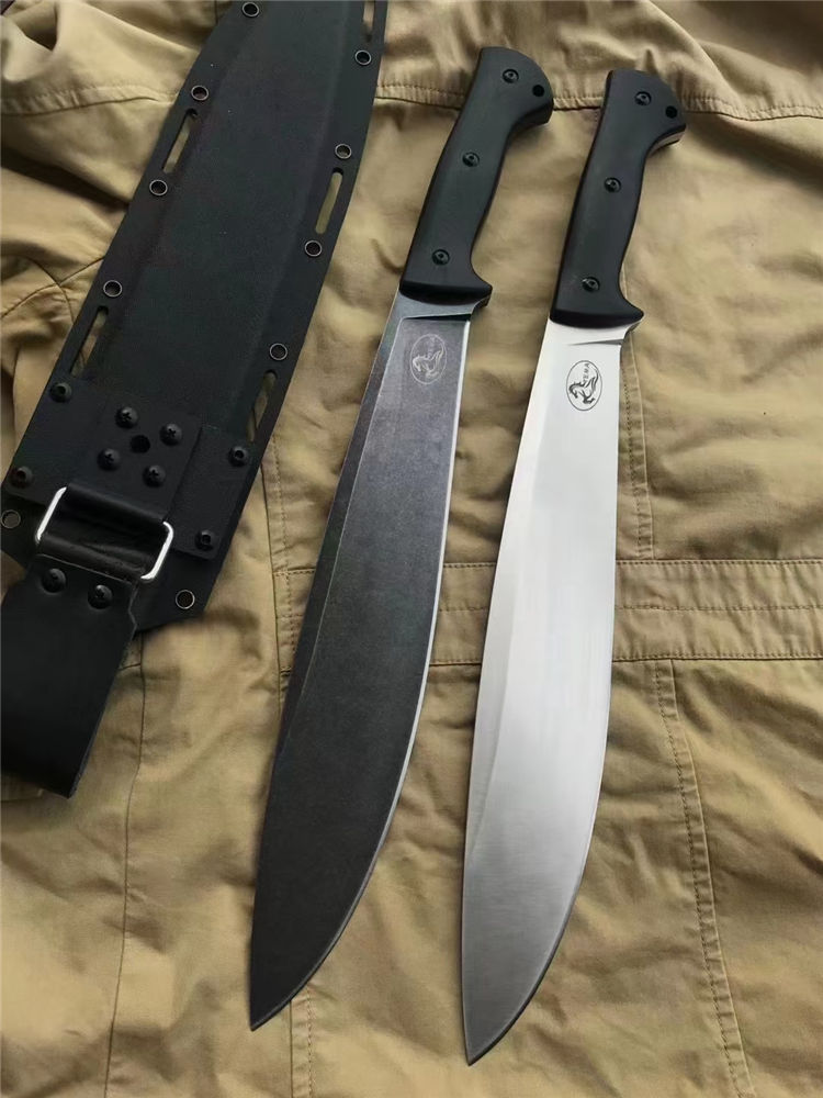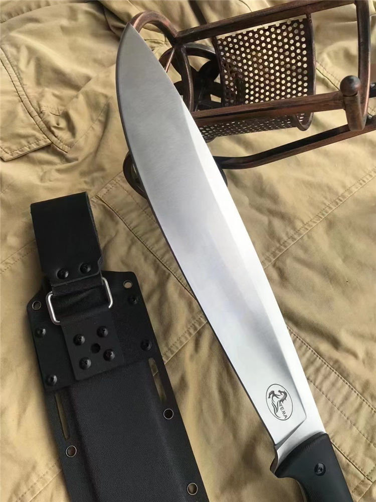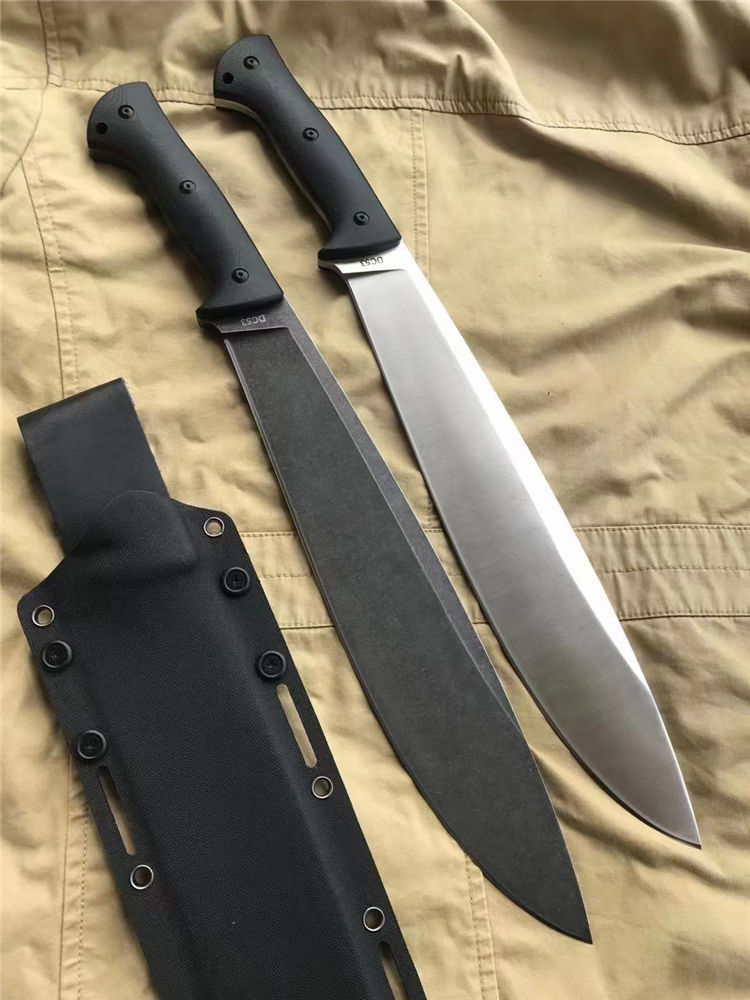 野马屠妖直刀 全长:45.3cm 刃长:31.2cm 柄长:14.1cm 刃厚:0.63cm 刃宽:5.4cm(最宽处) 手柄:G10 刃材:DC53磨具钢(材料保真) 硬度:60-61HRC 附件:进口美版2.0K鞘 重量:裸刀700克、鞘200克
