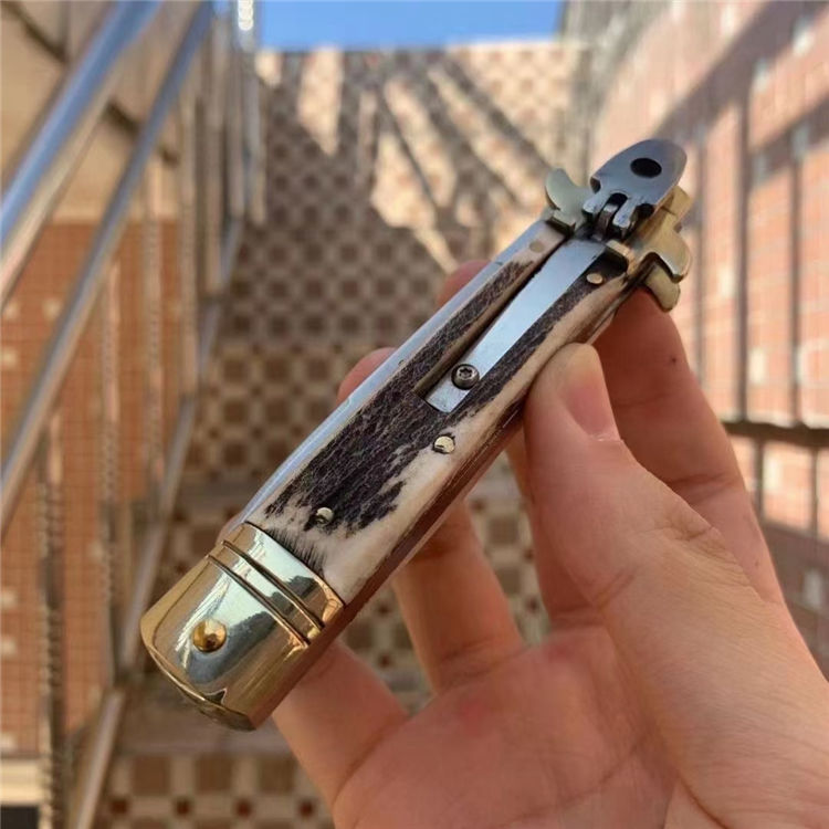 精仿意大利AKC鹿角柄弹跳刀(中号)