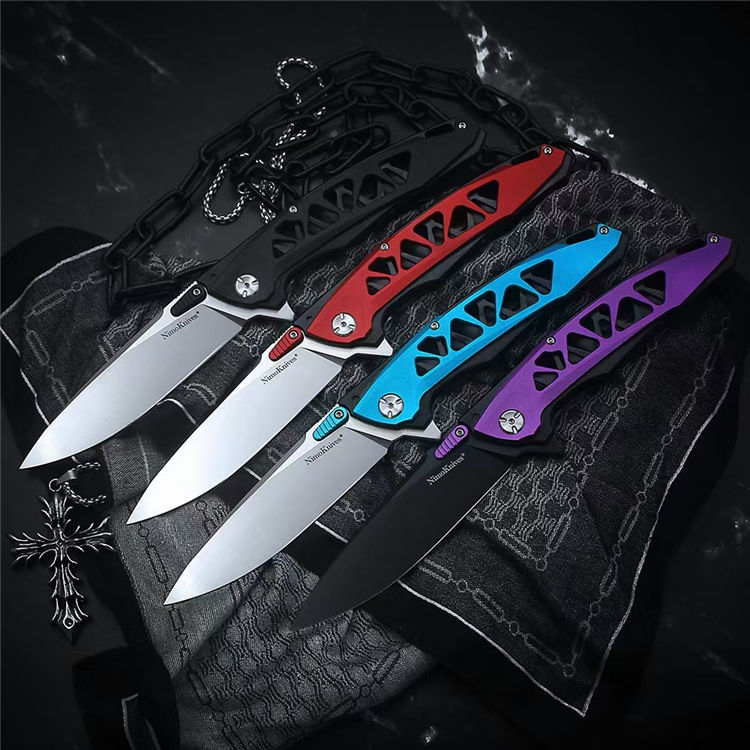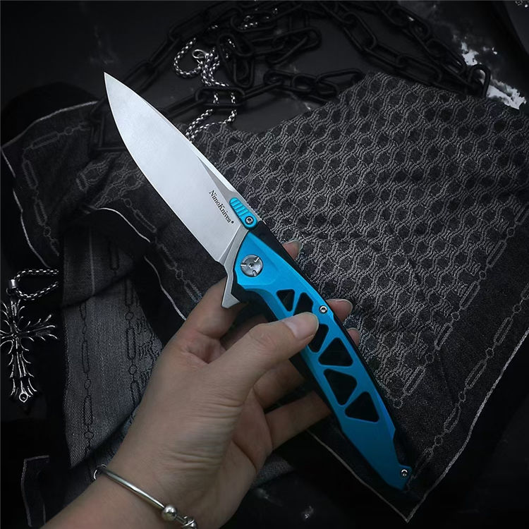 肥龙设联名款世界树折刀 长度:240mm 刃长:99mm 刃厚:4.5mm 刃材:D2 表面处理:砂光/黑钛 硬度:黑钛58HRC,砂光60HRC 柄材:不锈钢+铝T6-6061 骶骨:G10 轴承:滚珠轴承 包装:彩盒 净重:170g