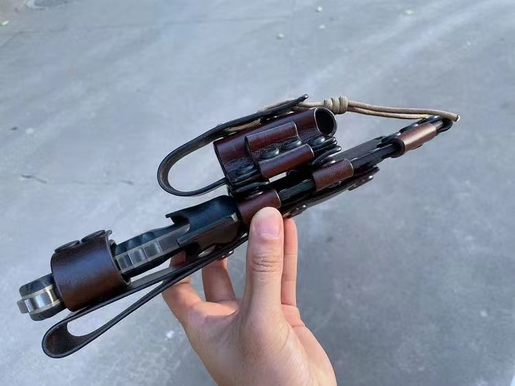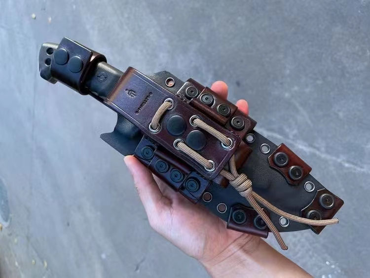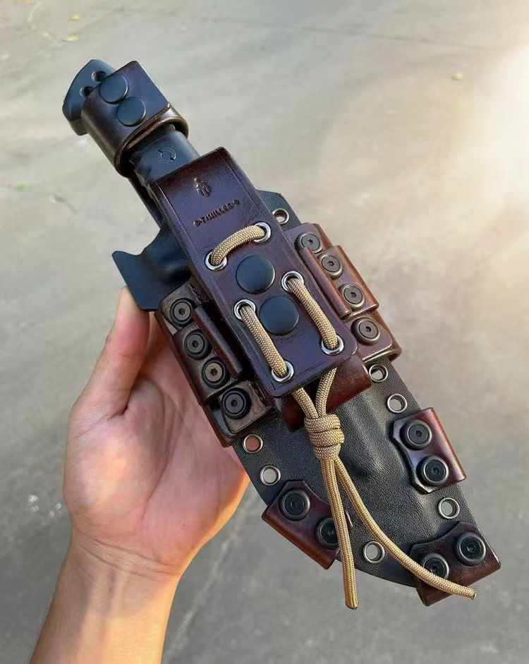 刀鞘:加厚型进口 2.4mmK 鞘+意大利进口植鞣皮手工制作刀鞘可装多功能小刀与打火石