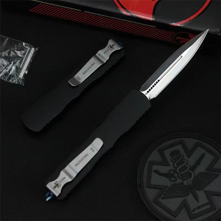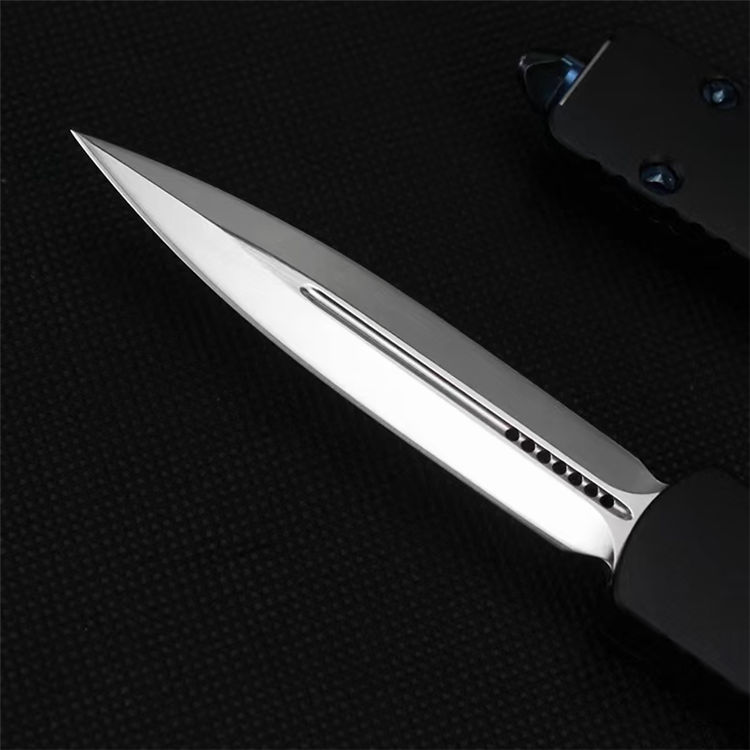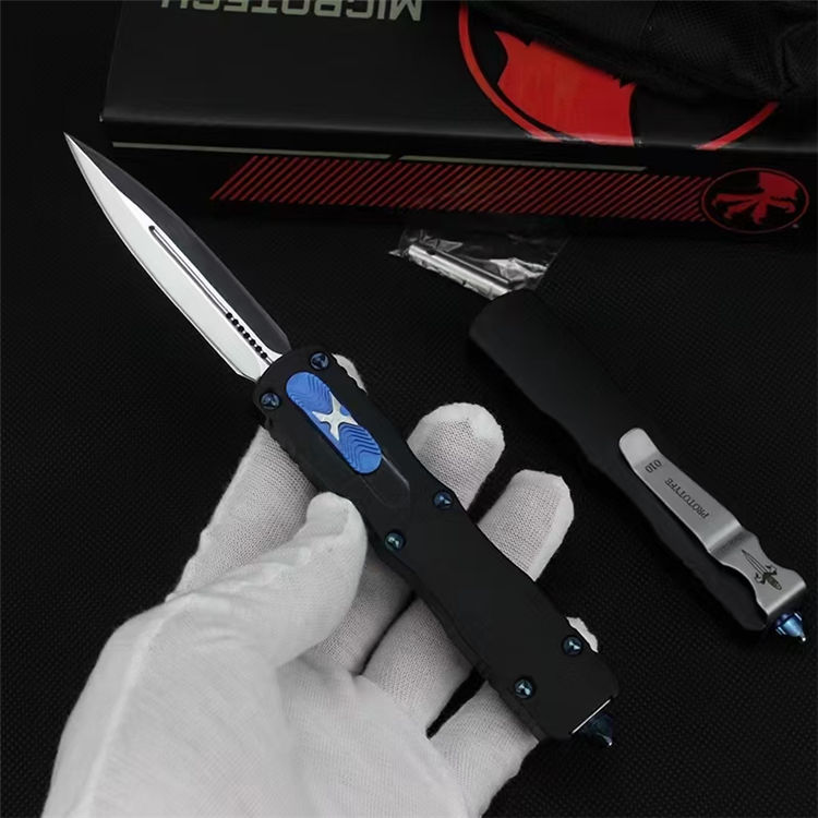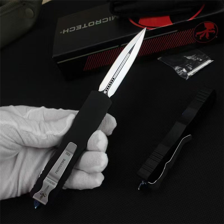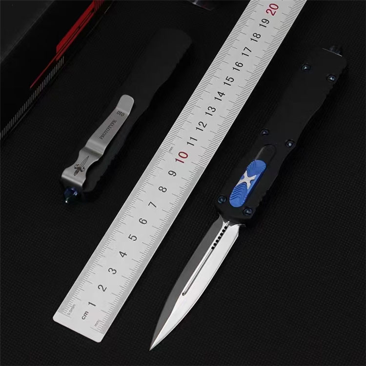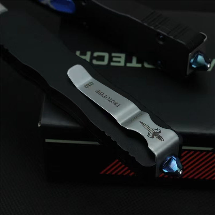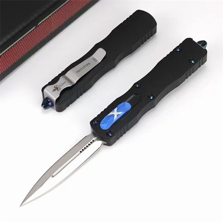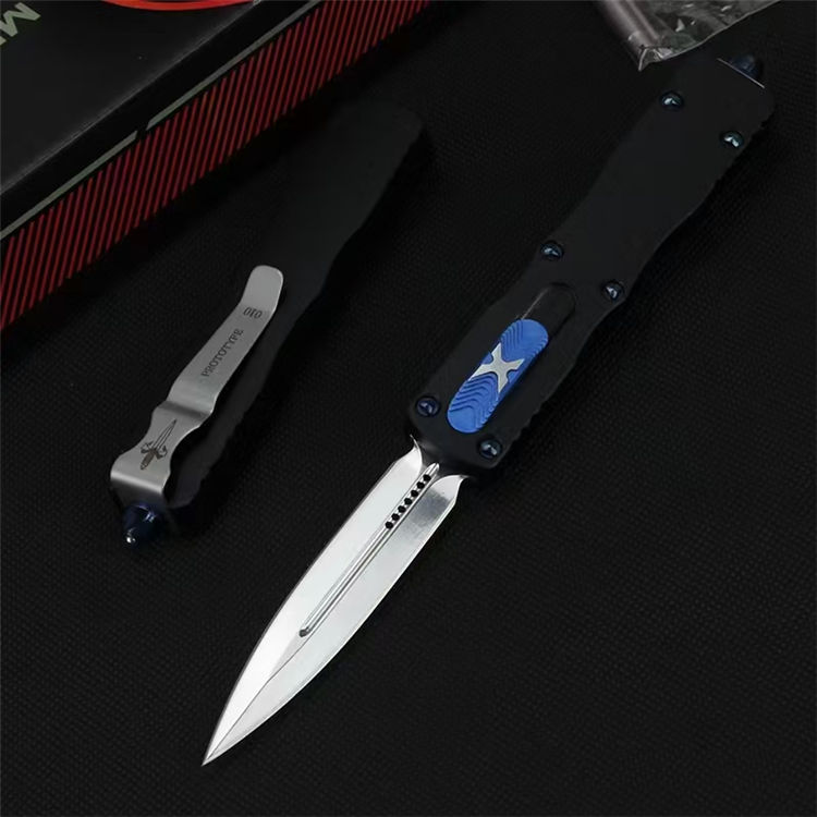 微技术狄拉克镜光直出跳刀 全长:195mm 刃长:80mm 宽度:16mm 厚度:3mm 柄长:115mm 材质:D2 柄材:铝合金 硬度:58-59HRC 表面:镜光 手柄表面:阳极氧化 包装:尼龙护套+盒子 重量:80g/165g(含包装)Dirac C