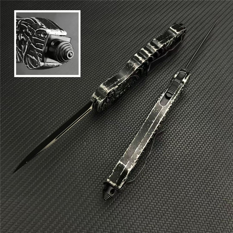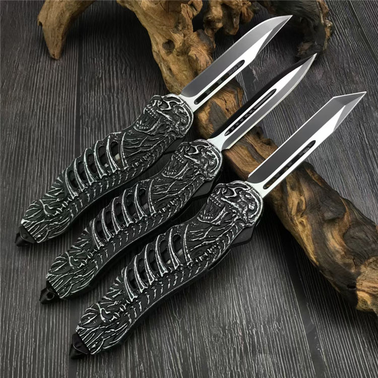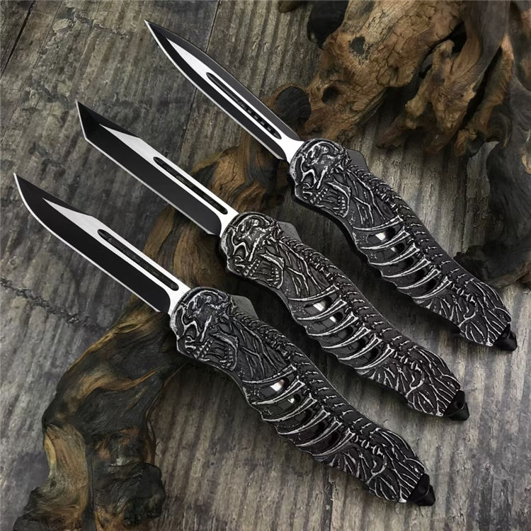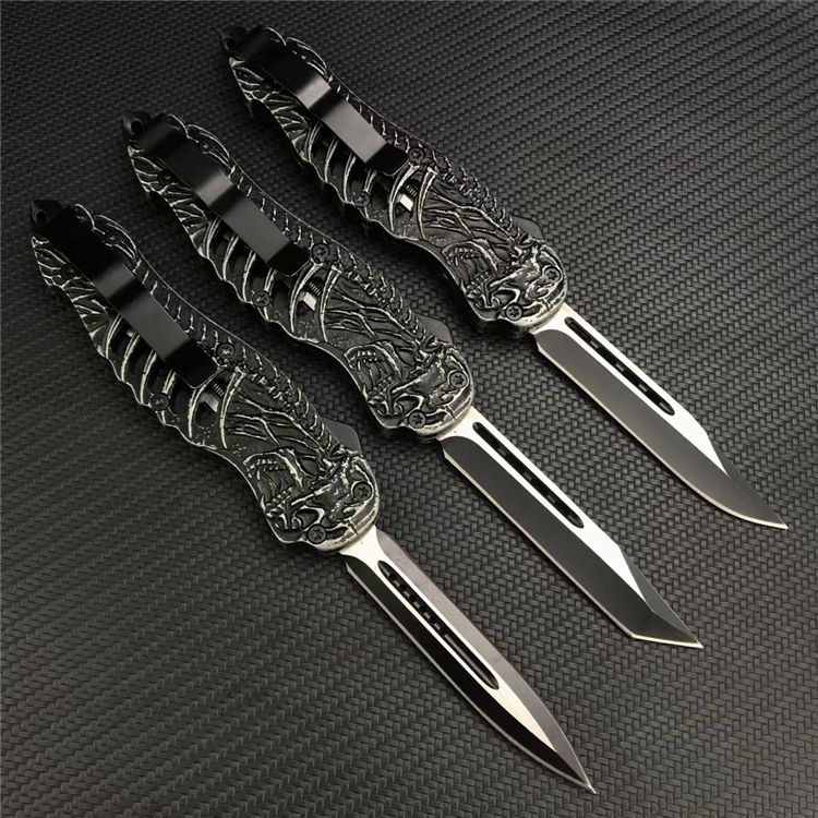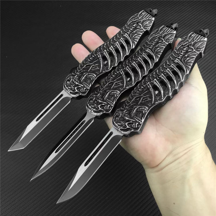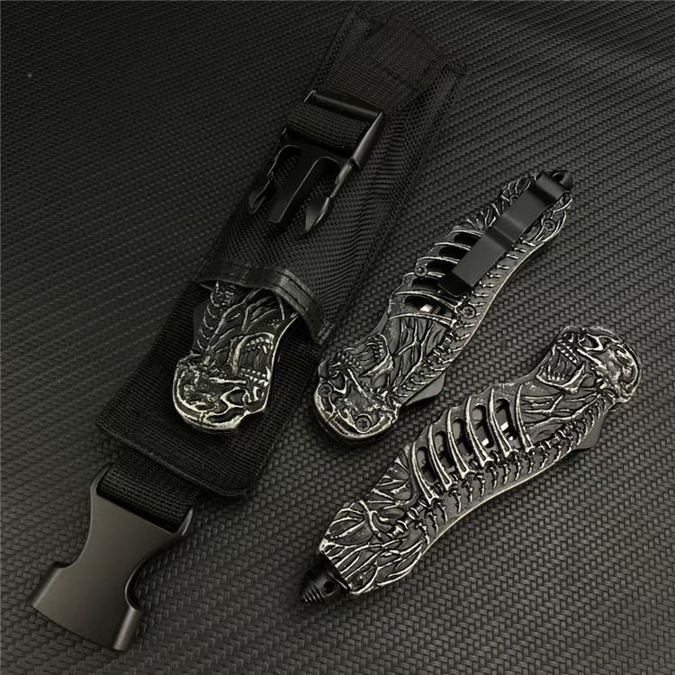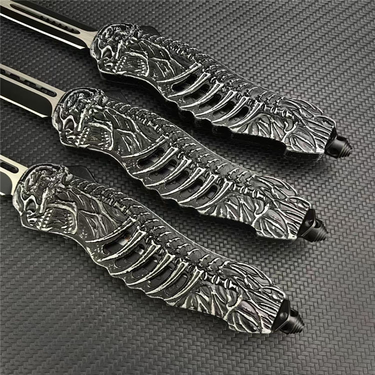 异形直出跳刀 总长:22.2CM 刃长:8.8CM 刃宽:1.5CM 刃厚:2MM 刃材:440C 柄材:锌合金 柄长:13.4CM 柄宽:30MM 柄厚:11MM 重量:203G