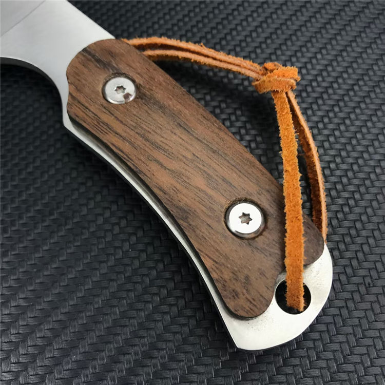 怒魂直刀 总长:19.3CM 刃长:8.9CM 刃宽:3CM 刃厚:2.5MM 刃材:7cr13 Mov 柄材:彩木 柄长:10.4CM 柄宽:24MM 柄厚:12MM 重量:105G 鞘材:PU皮鞘