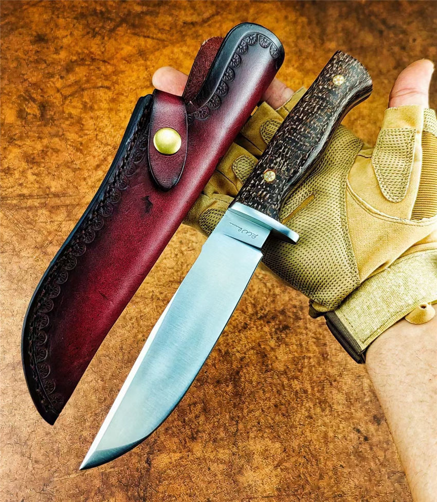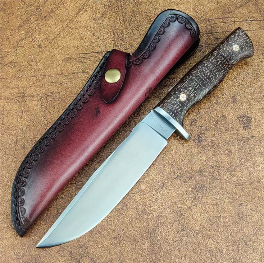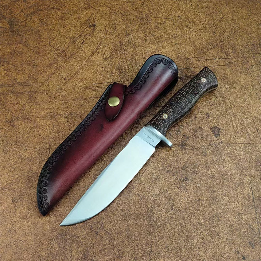 LW利威傲慢者直刀 型号:LW-50 全长:270MM 刃长:145MM 刃材:9CR18MOV深冷处理 刃宽:34 MM 硬度:60HRC+ 表面:数控水磨+精细砂光 刃厚:4.5MM 柄长:115MM 柄材:LU亚麻高密度碾压材料 净重:277g 重量:463g含套+礼盒包装 附件:进口手工牛皮套 包装:黑礼盒