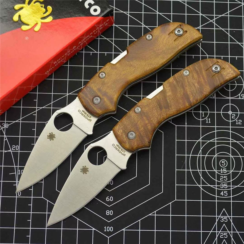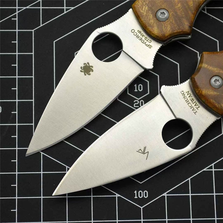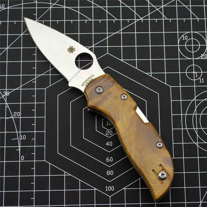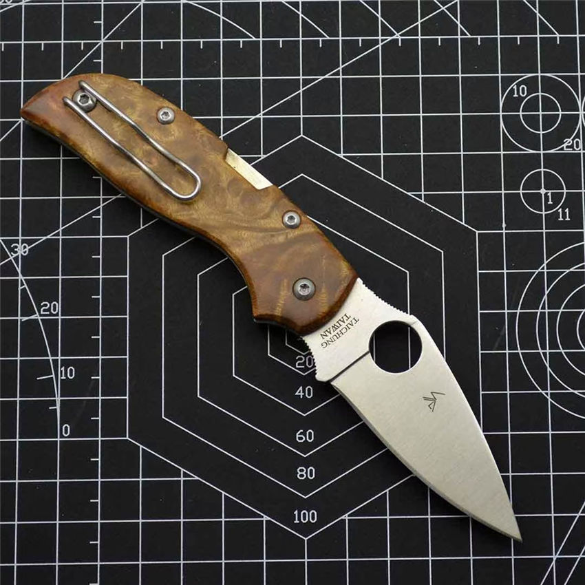 蜘蛛C152白影木折刀 全长:160mm 刃长:60mm 柄长:91mm 刃宽:26mm 刃厚:2.6mm 刃材:D2/大马士革钢 重量:83g 硬度:59HRC 表面:砂光 柄材:精细老料白影瘤木 其他:配彩盒