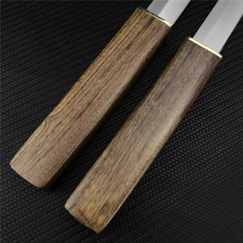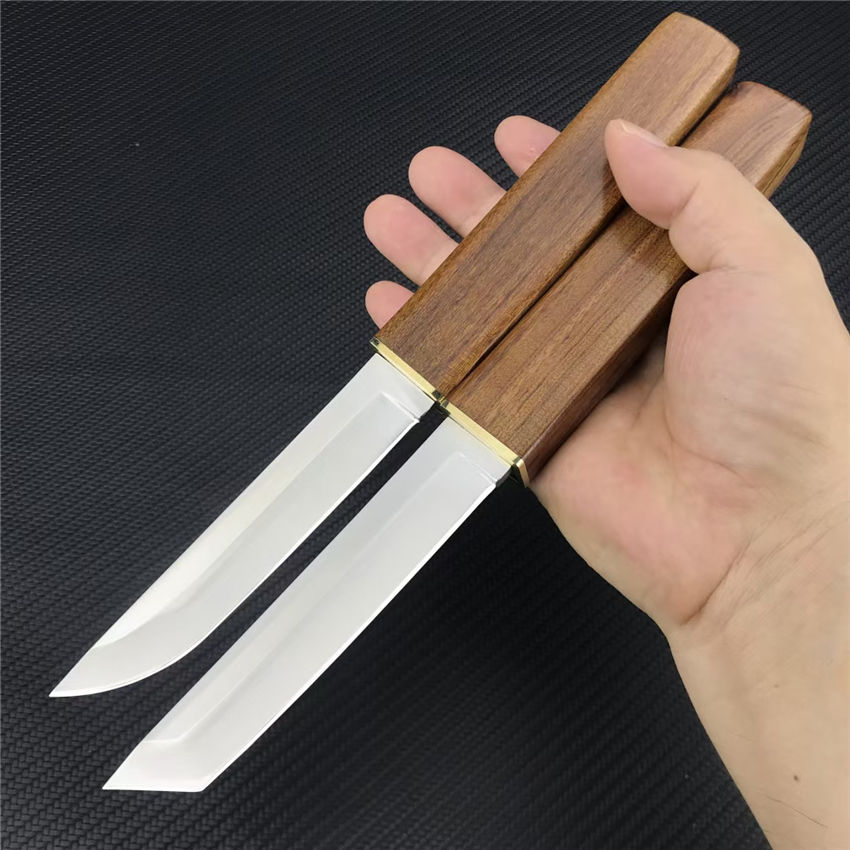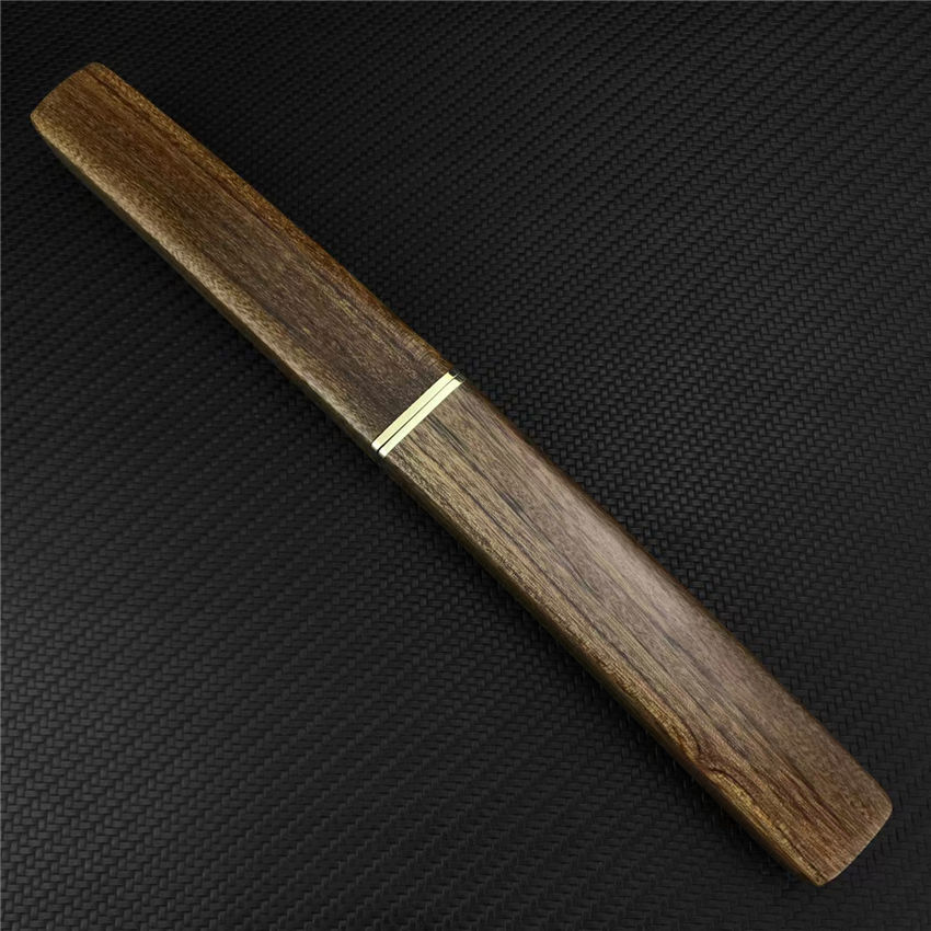 阴阳黑旋风直刀 总长:24.9CM 刃长:12.2CM 刃宽:2CM 刃厚:3MM 刃材:D2 柄长:12.7CM 柄材:红花梨 柄宽:26MM 柄厚:18MM 重量:130G