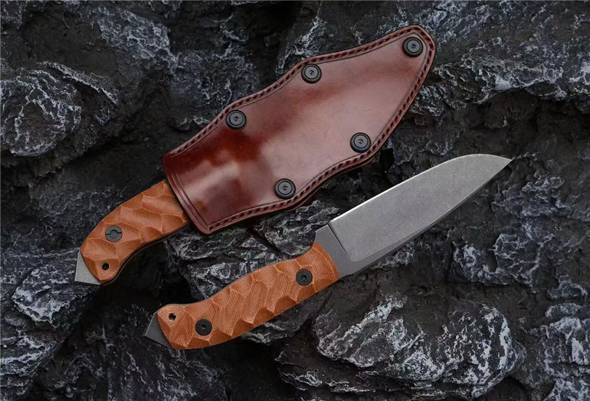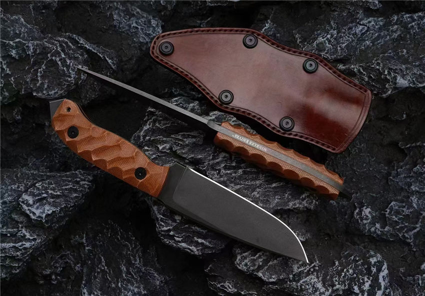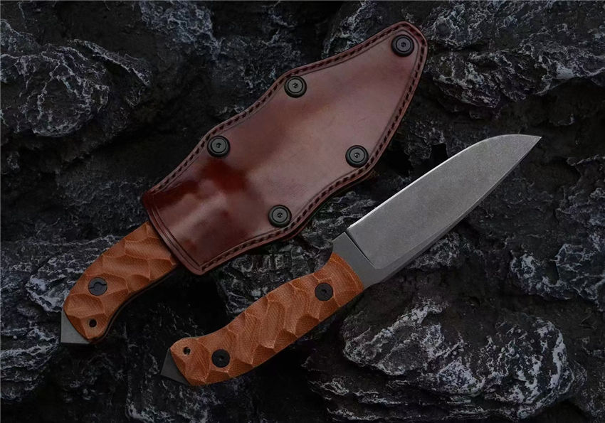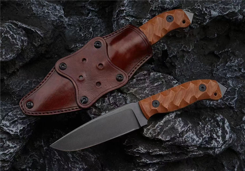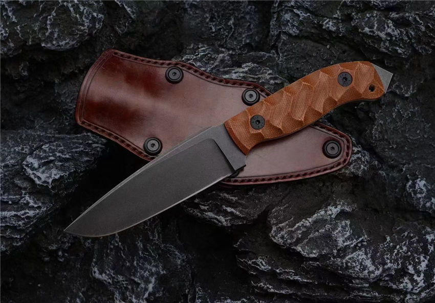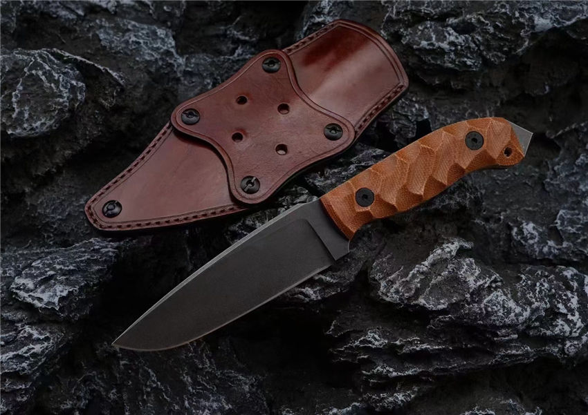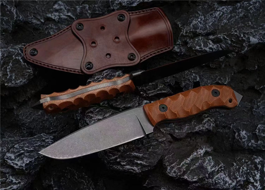 美国丹尼尔温克勒ABS直刀 总长:25.5cm 刃长:12cm 刃厚:6mm 刃宽:3.8cm 重量:245G 钢材:美国进口A2合金钢 硬度:60-62HRC 热处理:真空深冷油淬热处理 柄材:进口亚麻 表面处理:灰黑石洗/迷彩 皮套:阿根廷进口植鞣雕花皮套纯手工缝线黑色配K鞘套,手工复古着色 包装:手工盒子包装