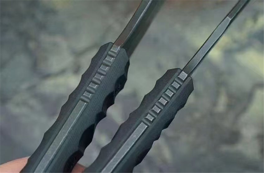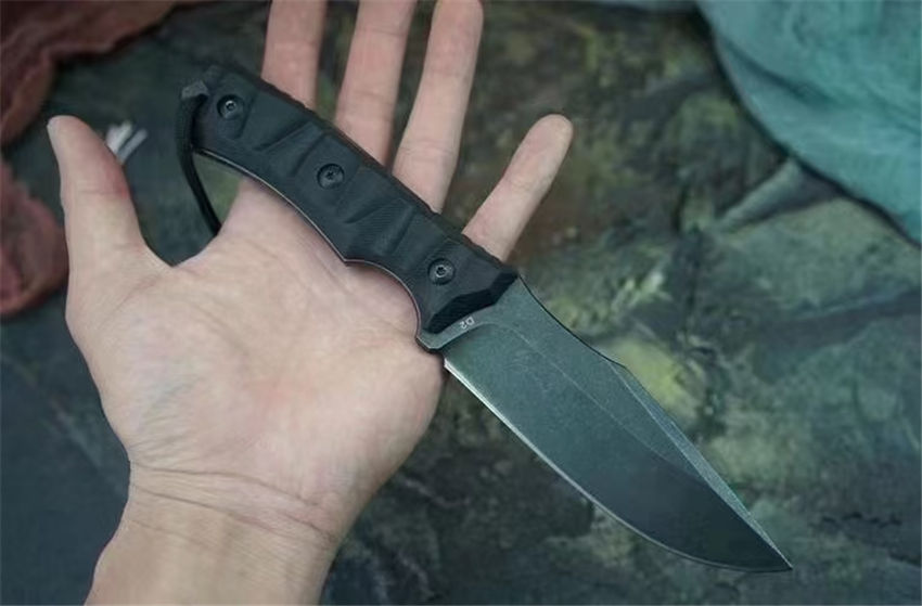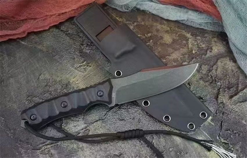TAD十字军二代直刀 总长:23cm 刃长:10.5cm 刃厚:4mm 刃宽:3.3cm 钢材:进口D2合金钢 硬度:60-62HRC 热处理:真空热处理回火 表面工艺:发黑怀旧石洗效果 柄材:黑色G10 刀套:进口K版K鞘 包装:出口盒子简包装