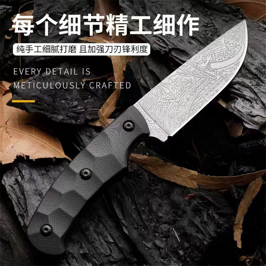 俄罗斯战术刀匠沃尔钦.维克手工打造,沃尔钦擅长设计与制作个性炫酷的战术类直刀,风格往往带上帅气的蚀刻图案,让人眼前一亮,外形流畅锐利,刀身带有研磨的石纹肌理,并处以帅气的蚀刻图案装饰,看点满满。全龙骨的构造,柄材为G10绝缘材料,配有K鞘,整体做工精良,是绝佳的个性玩具