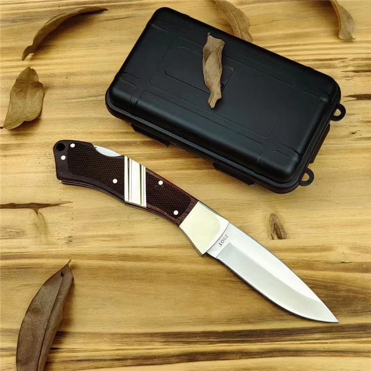 施拉德290T折刀 全长:195mm 刀长:80mm 柄长:115mm 刃宽:22mm 刃材:440C马氏体钢 硬度:58HRC 表面:沙光 刃厚:2.8mm 柄材:红酸枝+黄铜+钢片 锁型:背锁 刀重:41g/186g(含防水盒) 配套:PP太空防水盒 结构:经典轴承(掰开)
