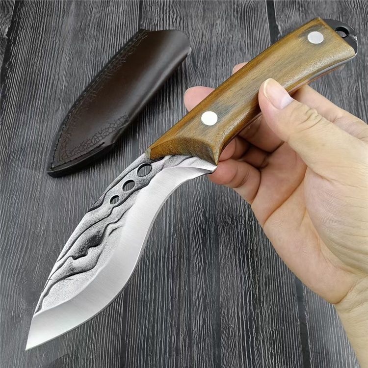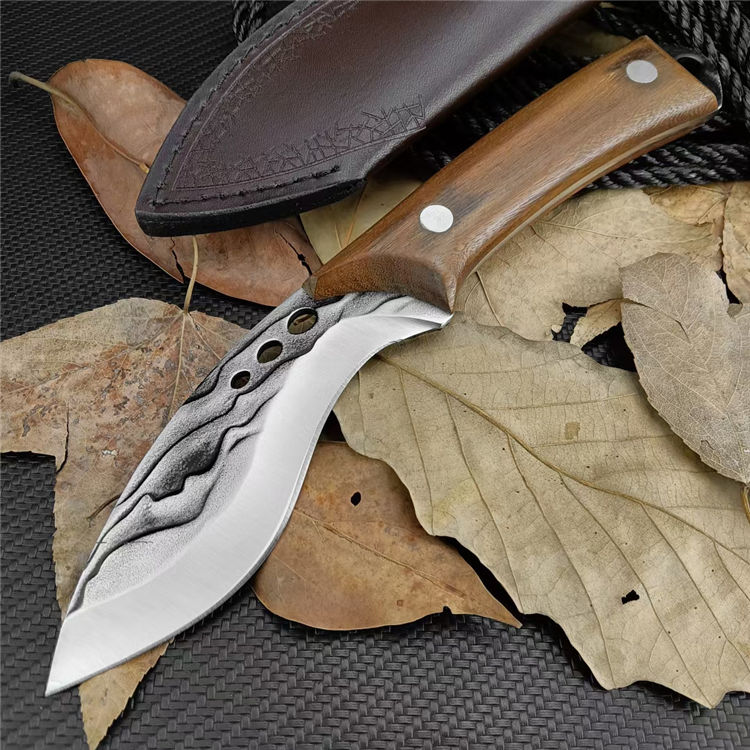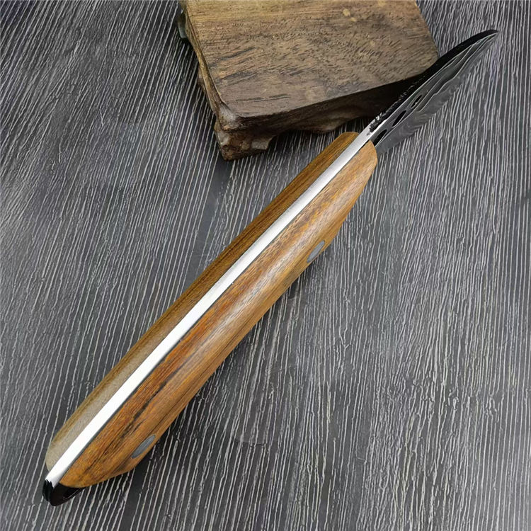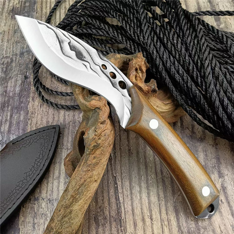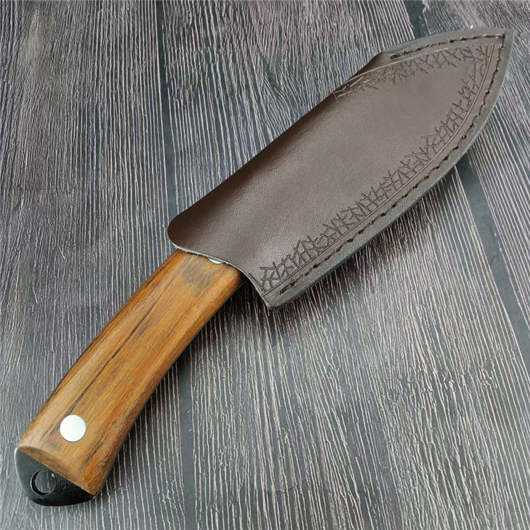 小狗鲨直刀 总长:24.1CM 刃长:11.5CM 刃宽:3.7CM 刃厚:3MM 刃材:7Cr13Mov 柄材:胡桃木 柄长:12.6CM 柄宽:26MM 柄厚:20MM 重量:210G 刀鞘:PU皮鞘